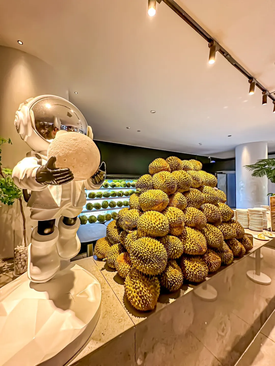 泡完温泉那就吃吃新鲜水果吧,尤其是这新鲜现开的榴莲,一口香甜软糯,让人吃到根本停不下来啊,还有葡萄🍇,🫐蓝莓,樱桃🍒等几十种水果,以及超多款饮品,哈根达斯冰激凌🍦,这下是直接吃过瘾啦🤩