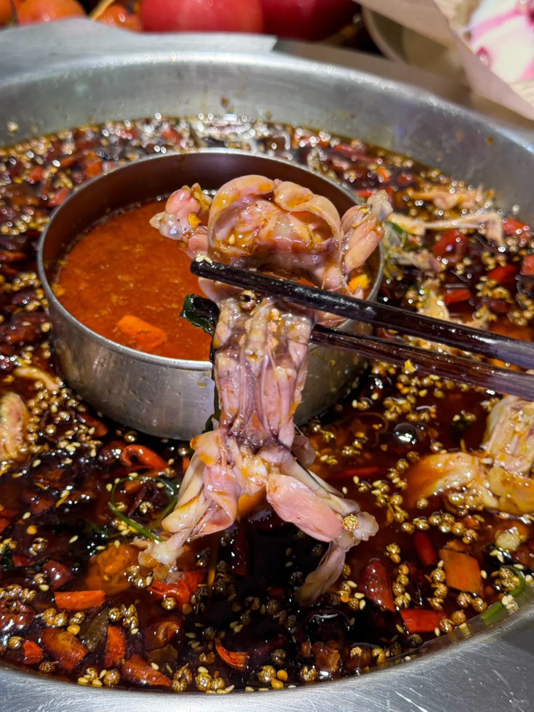 不需要涮煮太久,闻着香味就已经让人垂涎三尺了🤤,黄辣丁真的好滑嫩,吃起来鲜香入味,一点儿不腥,而美蛙的肉质也是q弹紧实,并且个头又大,肉质又饱满,真的是边吃边让人赞不绝口啊👍🏻