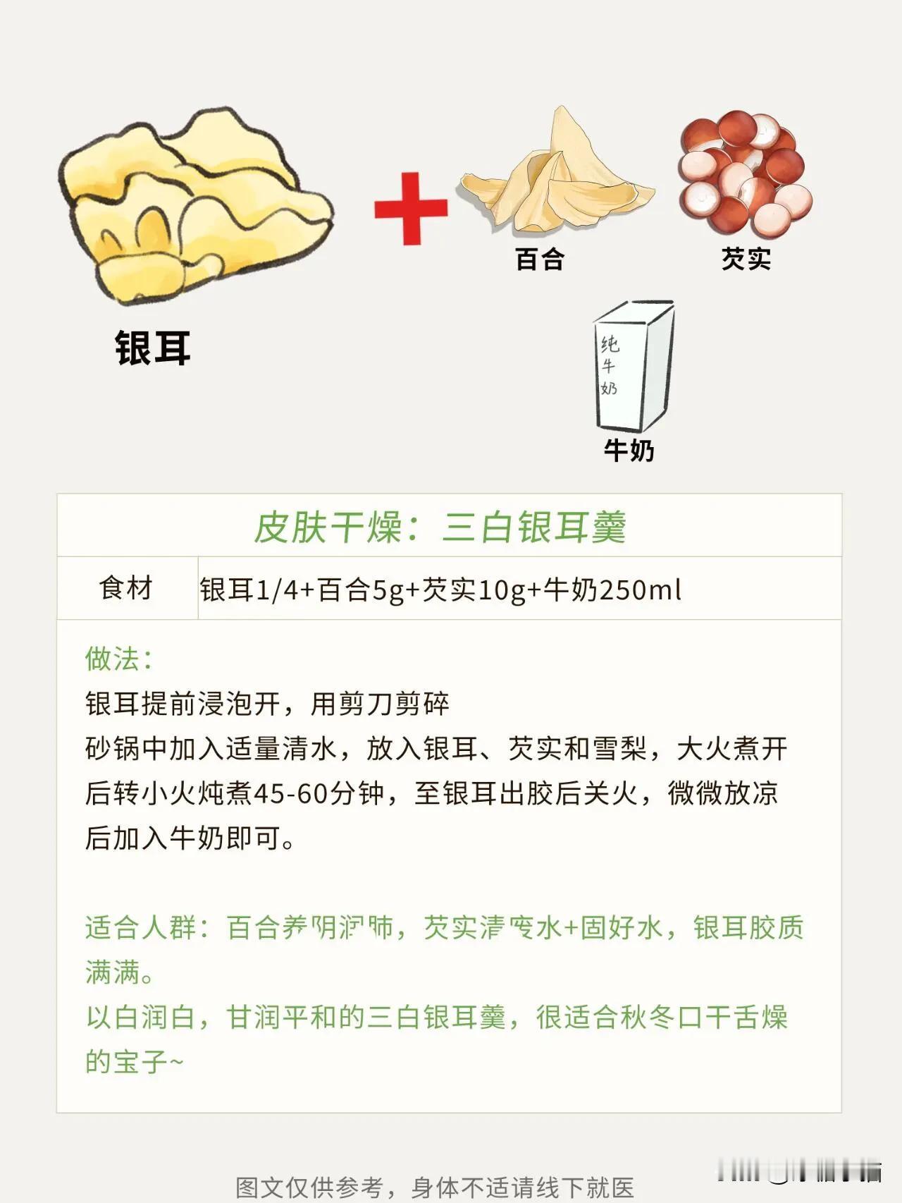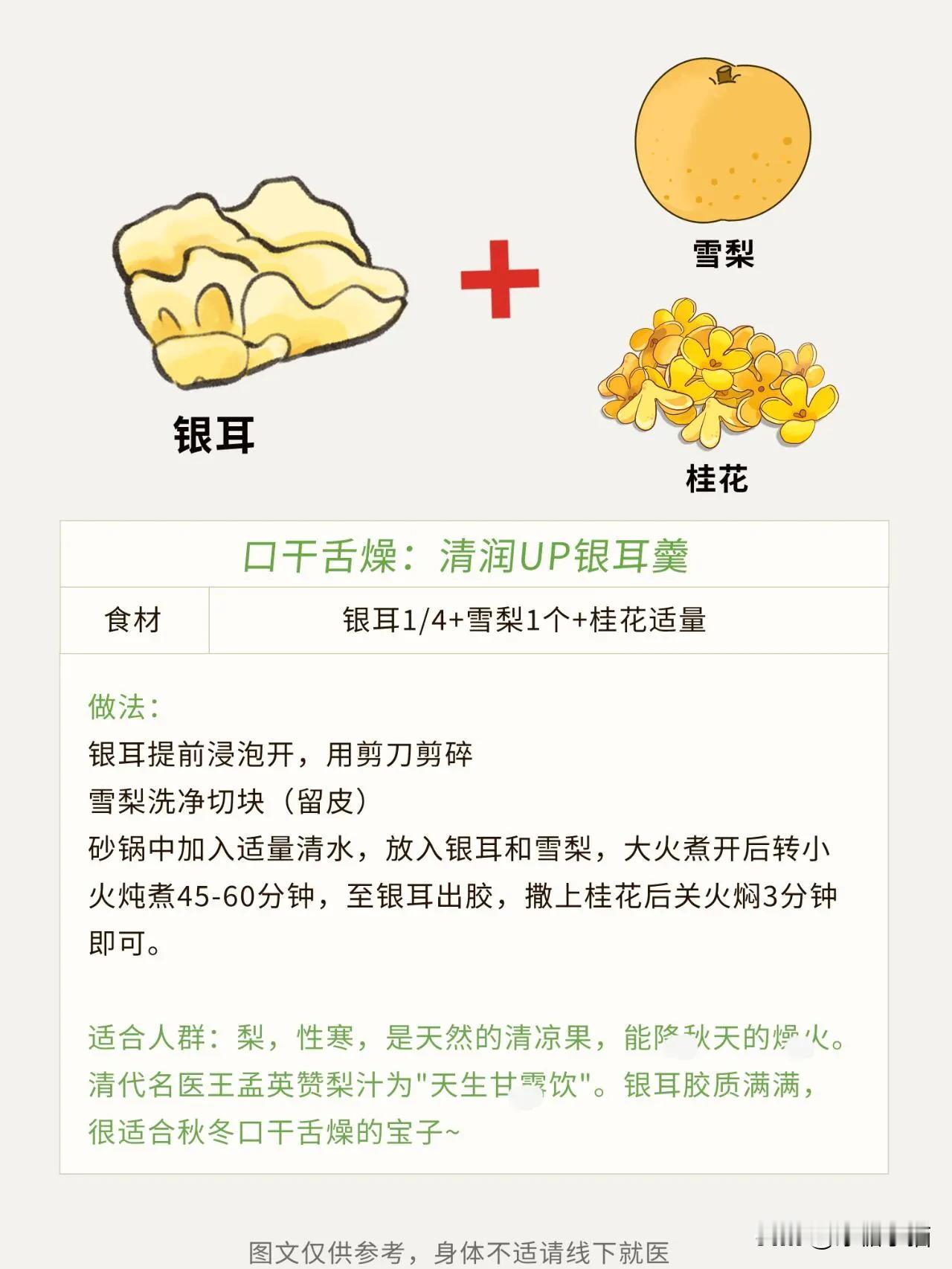 秋冬多吃银耳,皮肤水润润的应对干燥的秋冬 秋冬天气干燥 是蕞容易感受到“干”的时间段🧐 也是津液蕞忙碌的时候🐝 津液一边🌧润肺,一边润🌧皮毛 频频消耗不及时补充,⭕️津液有点不够用了 - zi阴生津,银耳是一个很好的选择 银耳,又被称为“平民燕窝”,✨含有丰富的天然植物胶质,对女孩子很友好。 👉分享4⃣款银耳羹 #秋季滋补燕窝# #润燥的茶饮# #免冲泡银耳羹# #必备秋梨银耳汤# #健康燕窝银耳羹# #银耳雪梨水# #轻负担银耳羹# #千玥梨润肺止咳# #百合梨饮# #7种雪梨搭配茶#
