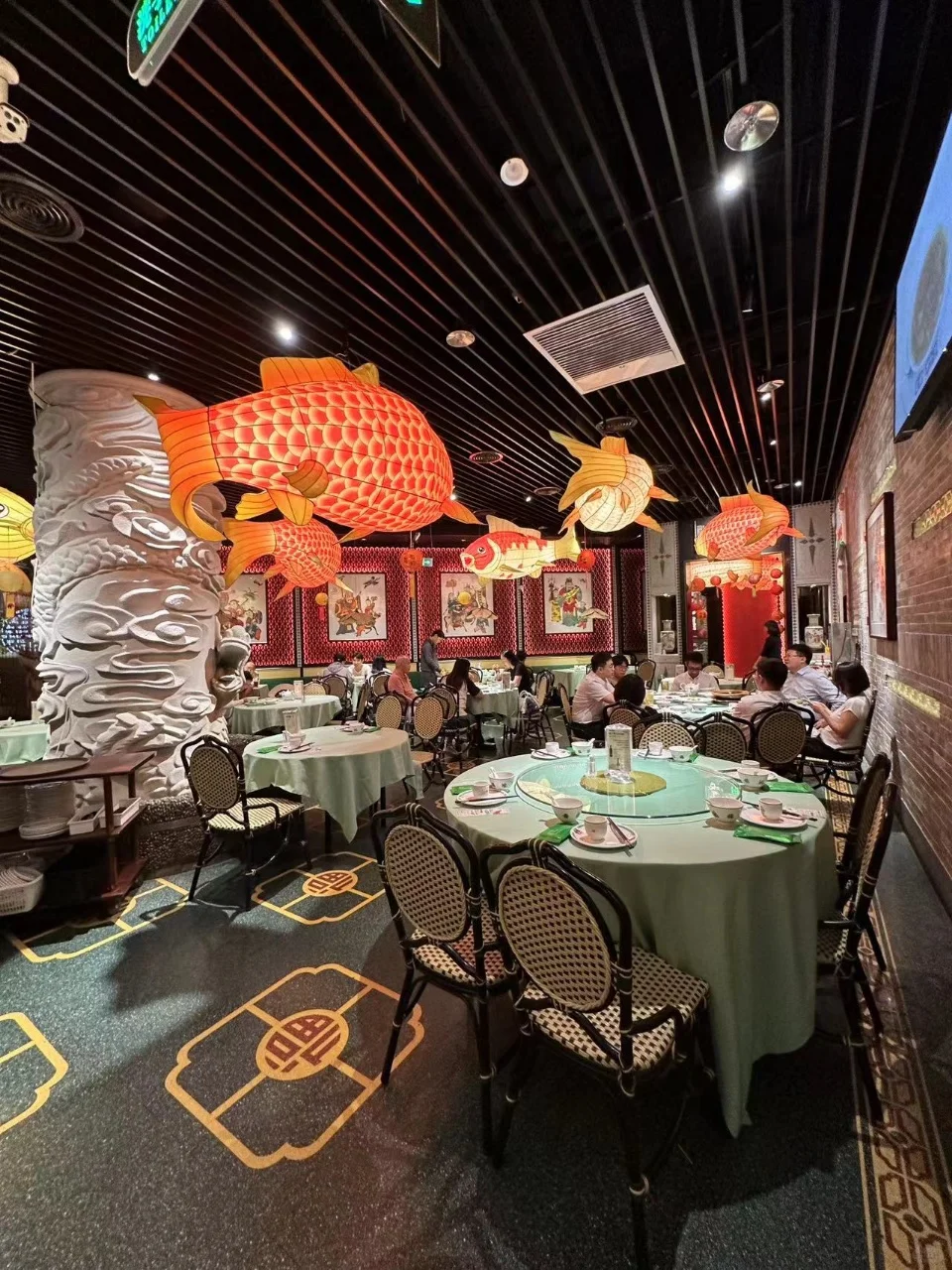 北京的夏天闷热潮湿,金九银十最适合外出赏景🍂🌲,蓝天白云☁️的金秋一家人相聚在肥福。 环境:大厅是广式茶餐厅的岭南装修风格,如祖屋祠堂、喜庆的鲤鱼灯笼等,将岭南风格发挥得淋漓尽致。 🥢 酸辣鱼翅: 在肥福聆郎满目的珍贵食材随处可见,这次点了新菜酸辣鱼翅,酸辣鱼翅是一道独特的美食。翅本身质地滑嫩,经过精心烹饪后,口感更加丰富。酸辣的味道刺激着味蕾,酸味清爽开胃,辣味恰到好处,不会过于浓烈而掩盖鱼翅的鲜美。 🥢奶香菠萝包:🥯🥯奶香四溢,表皮酥酥脆脆,面包松软,夹心甜度刚刚好,老少皆宜。