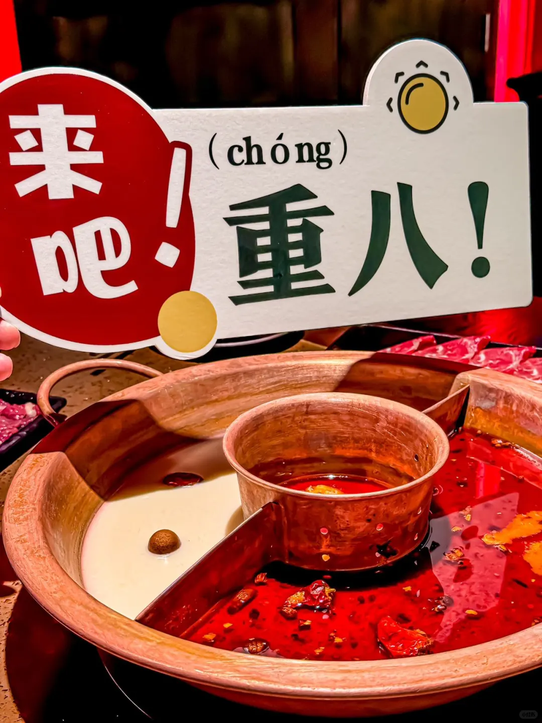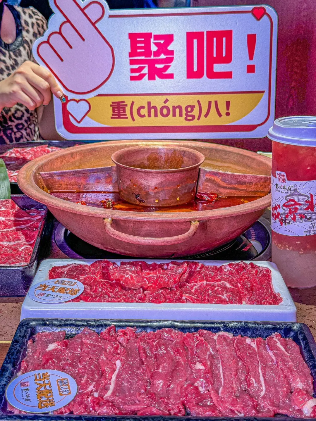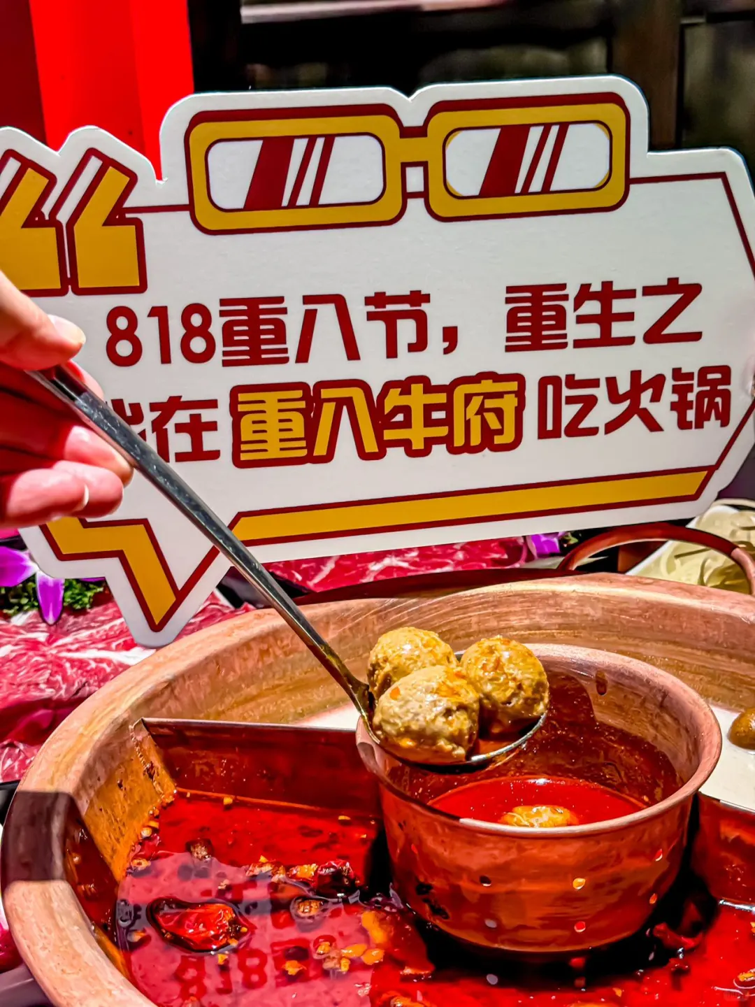 进店必须给我点重八秘制红油骨汤牛丸鸳鸯锅,谁吃谁爱❤️,两个锅底都嘎嘎正!红油锅底牛油浓郁,鲜辣十足,一点儿也不麻,涮什么都入味但又不会掩盖住食材本身的味道~骨汤浓郁,清淡又不失特色!锅底还有10颗实打实的牛肉丸,越煮越香。
