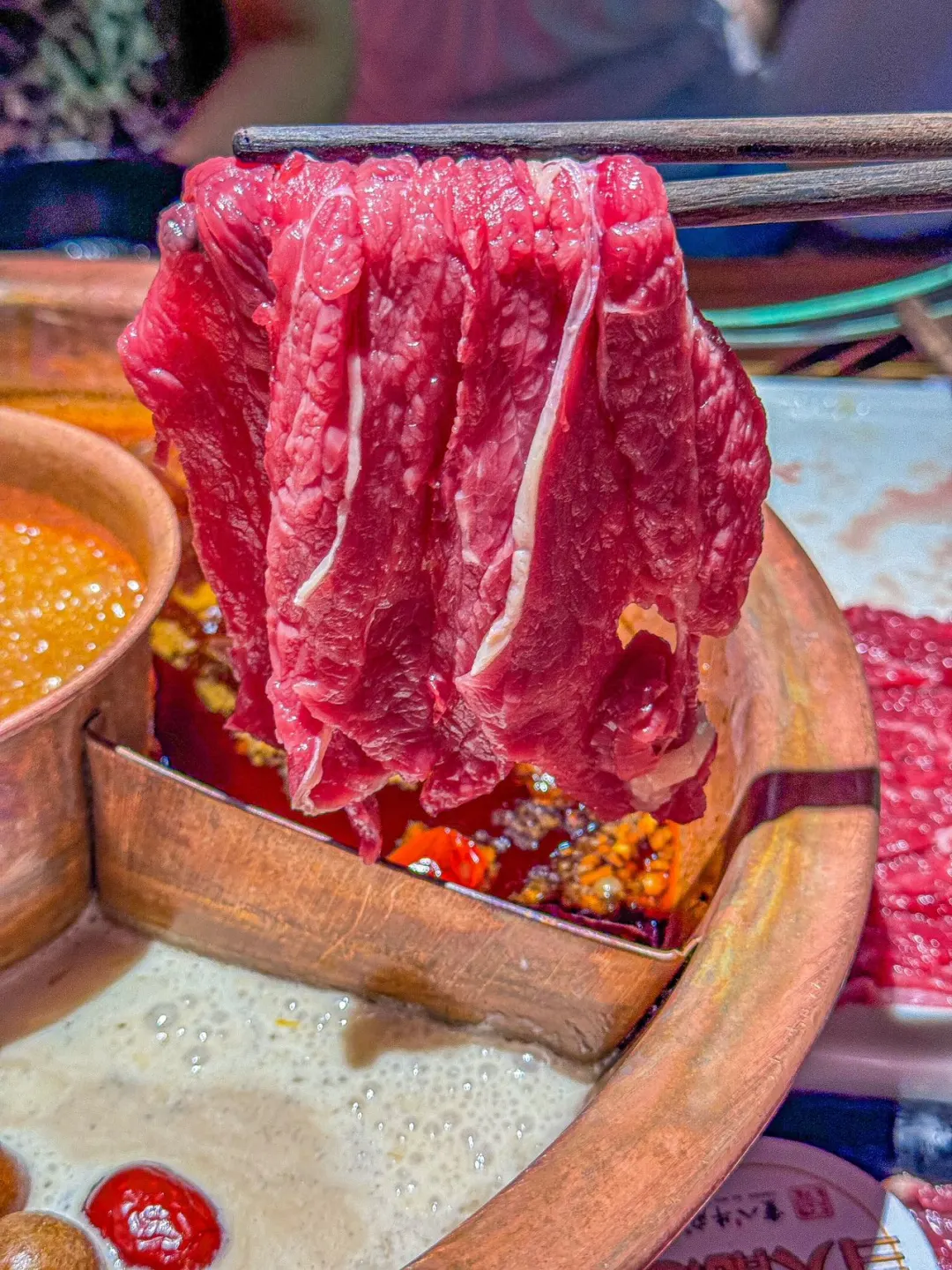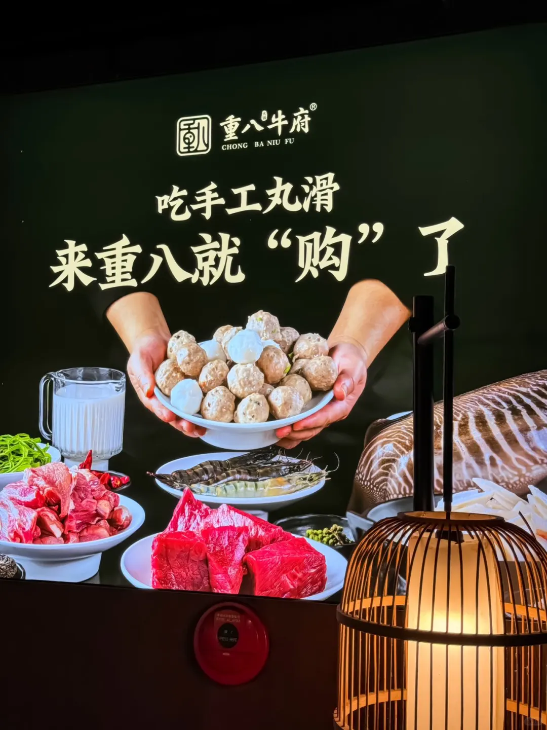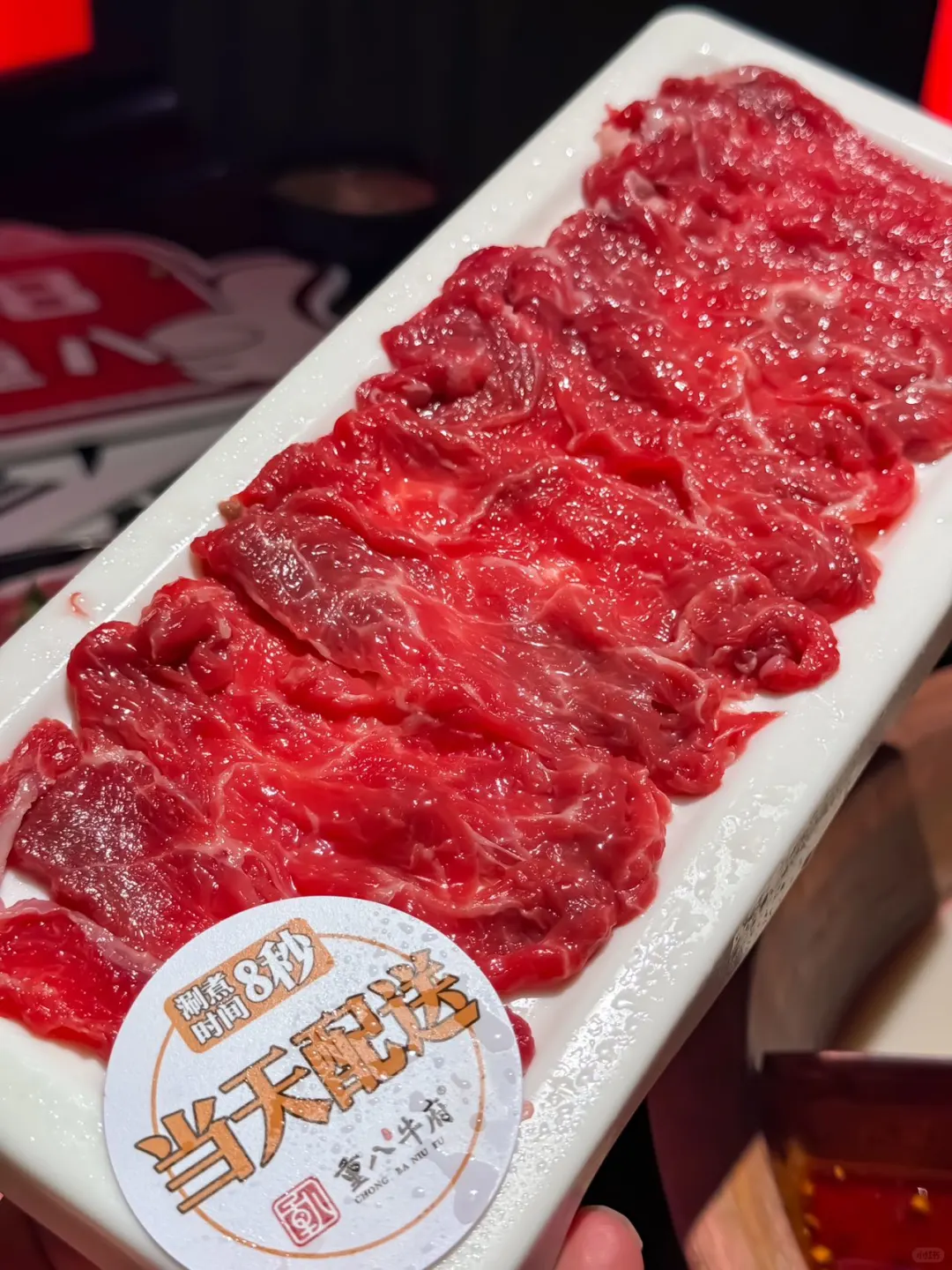 进店必须给我点重八秘制红油骨汤牛丸鸳鸯锅,谁吃谁爱❤️,两个锅底都嘎嘎正!红油锅底牛油浓郁,鲜辣十足,一点儿也不麻,涮什么都入味但又不会掩盖住食材本身的味道~骨汤浓郁,清淡又不失特色!锅底还有10颗实打实的牛肉丸,越煮越香。