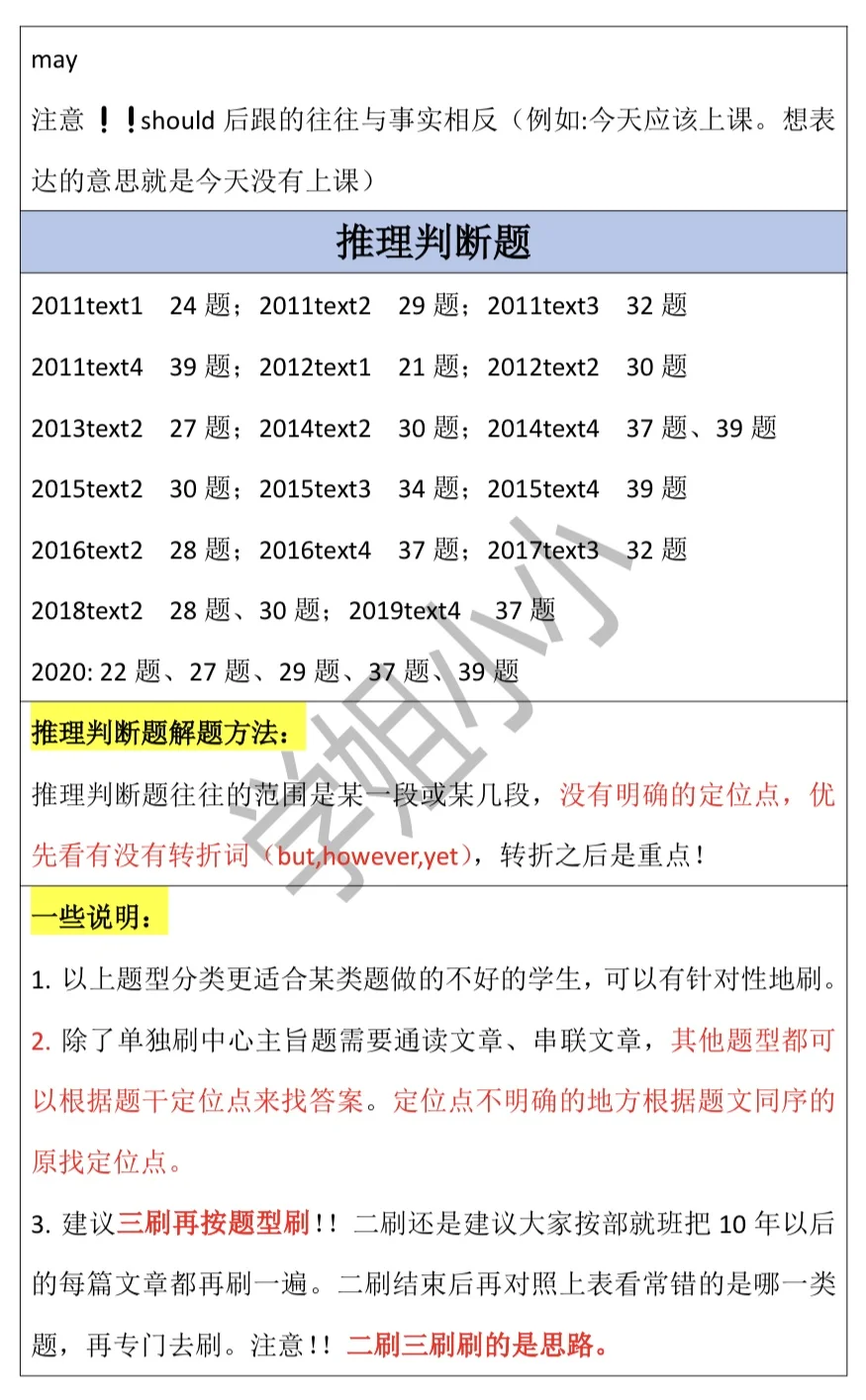 [三R].除了单独刷中心主旨题需要通读文章、串联文章,其他题型都可以根据题干定位点来找答案。定位点不明确的地方根据题文同序的原找定位点。