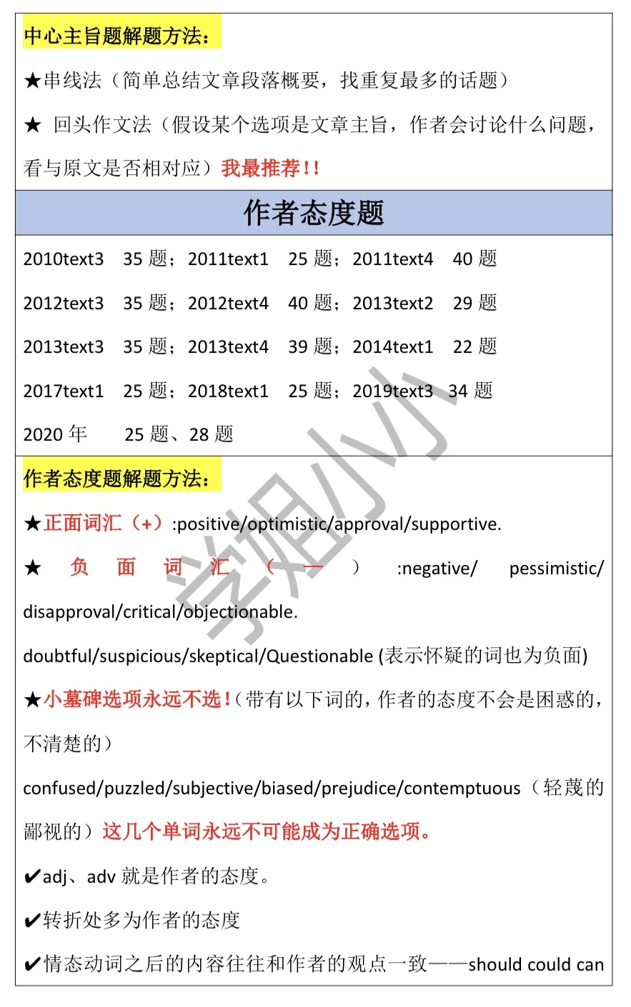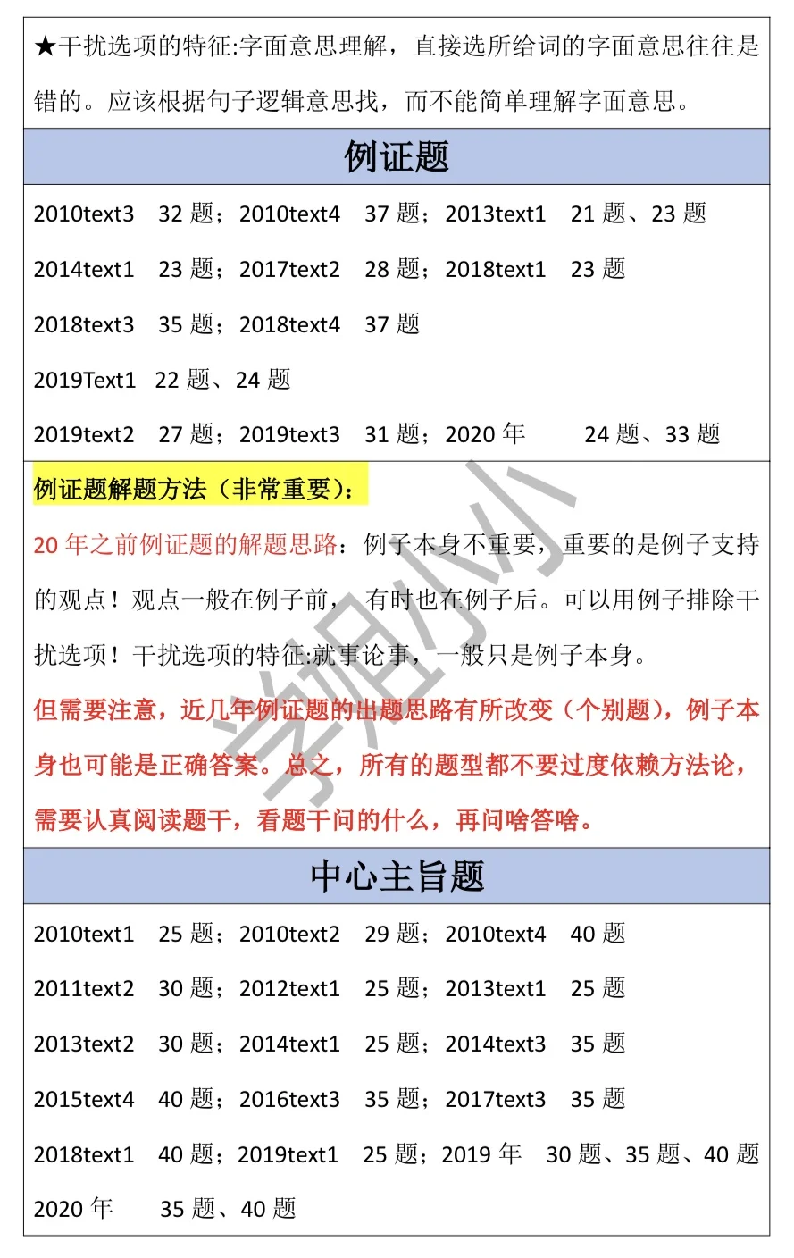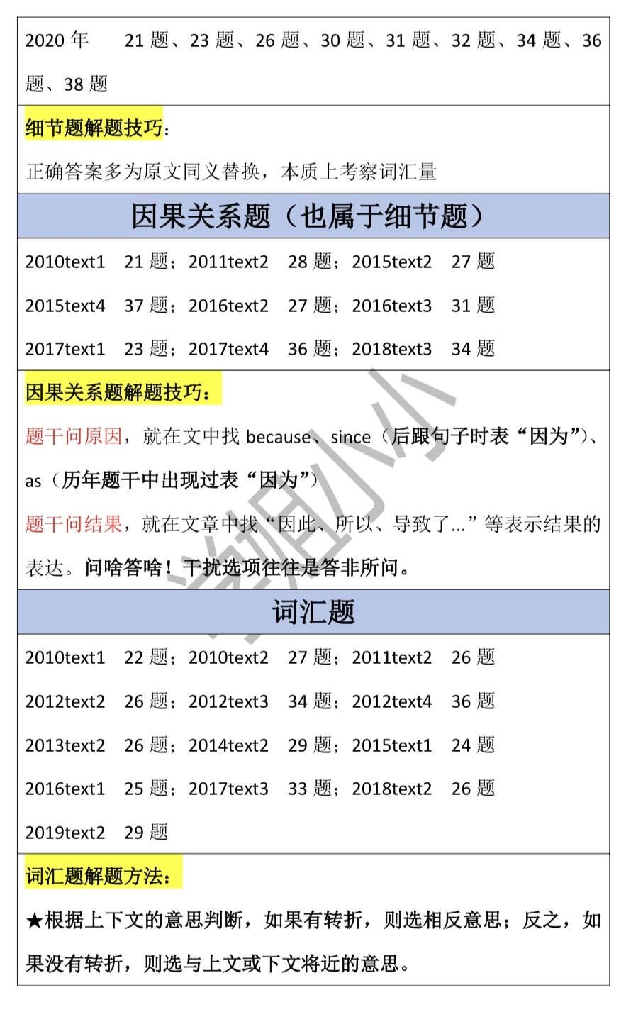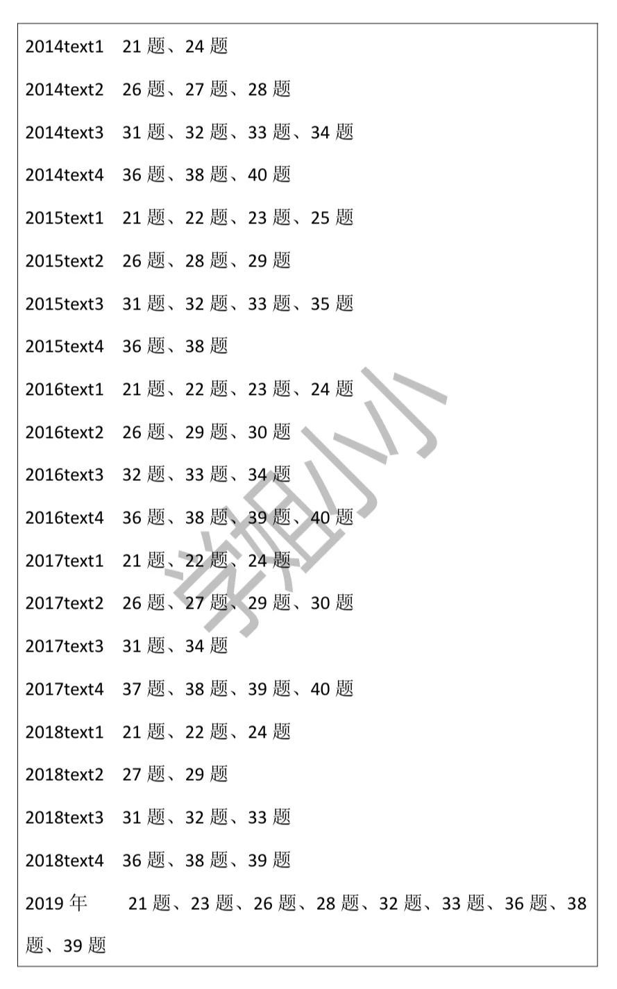 halo宝子们,今天分享英语二阅读10-20年的题型分类。针对上表做一些说明⬇️