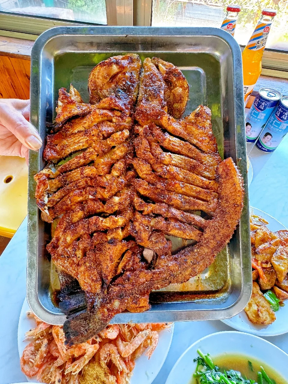 来怀柔怎么能不吃鱼,鱼肉白嫩细腻,是怀柔当地的特色红鳟鱼哦,烤的外焦里嫩,对着二层露台的风景,吃着当地特色的鱼,太美妙了!