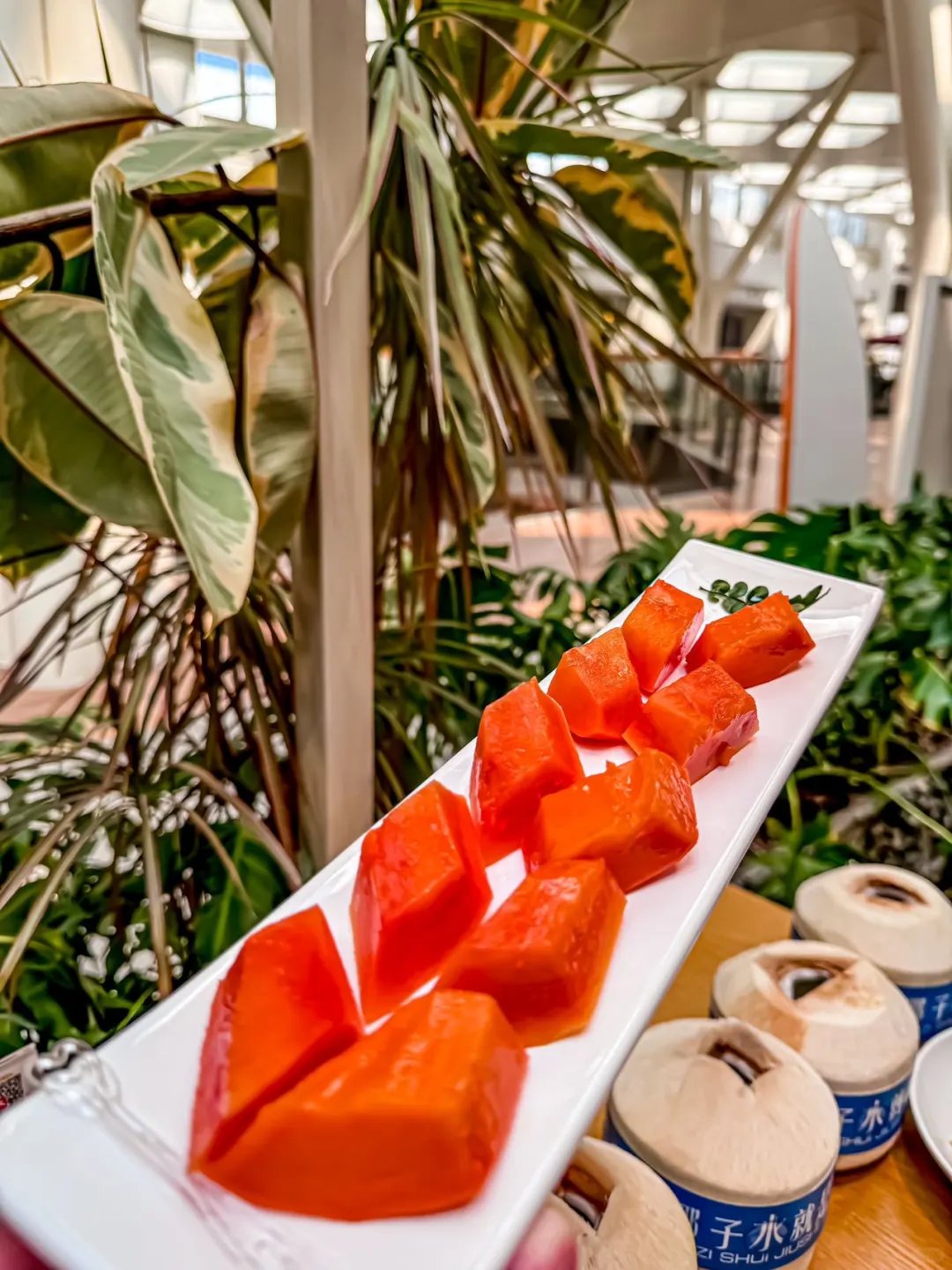 海南特色木瓜,汁水贼丰富,白口吃的就特别的香甜,要是用椰汁锅🔥涮着吃,味道更加软糯鲜甜了😋