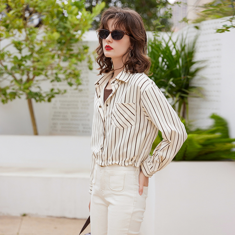 白鹿语条纹假两件短款衬衣24春季新款时尚休闲减龄落肩长袖衬衫女
