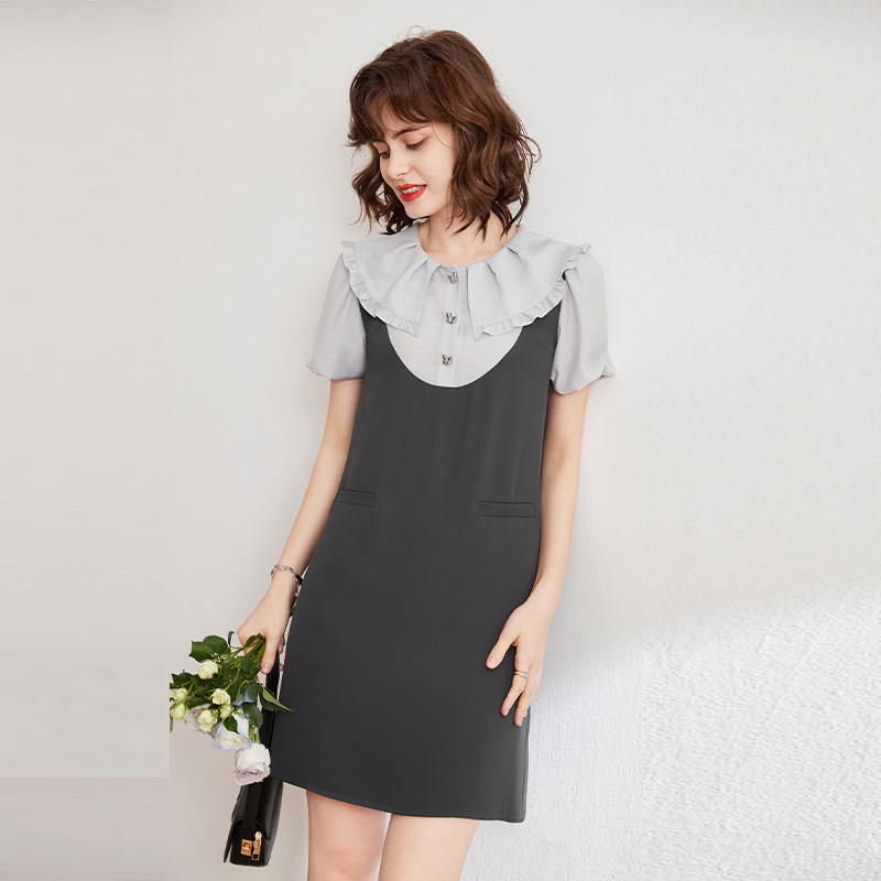 甜美减龄,拼接泡泡袖设计,宽松舒适,尽显夏日清新甜美风。