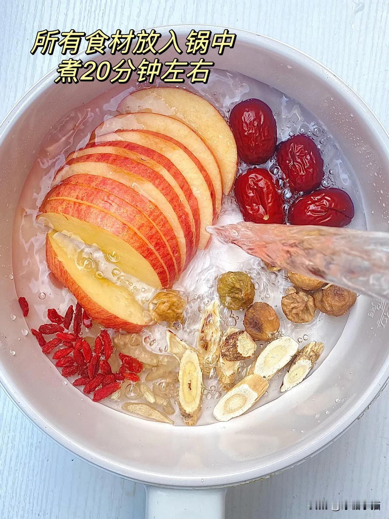 香港太太们总喝这个!!难怪50岁都不显老😂希望所有女生都喝起来! 我的快乐回🩸水~真的有用~ 所用食材对女生也特别好~ 还加了能K氧的苹果,无花果对🐻结节也有用!快快跟我一起喝起来,冬天保温杯里必备! 💗食材:苹果,枸杞,红枣,麦冬,黄芪,无花果 💗做法:所有食材洗干净放入锅中,加水小火慢煮20分钟, ⚠️喝完可以重复加水哦,喝一天没问题的! #陈皮红枣花胶汤# #芬姐精选好汤水# #黄芪梨枣汤# #陈皮玛珈人参汤# #西洋参桂圆煮水# #陈皮薏米无花果# #黄芪可煲汤煮粥# #养生汤广东靓汤# #小吊梨汤有多好# #广东大补靓汤#