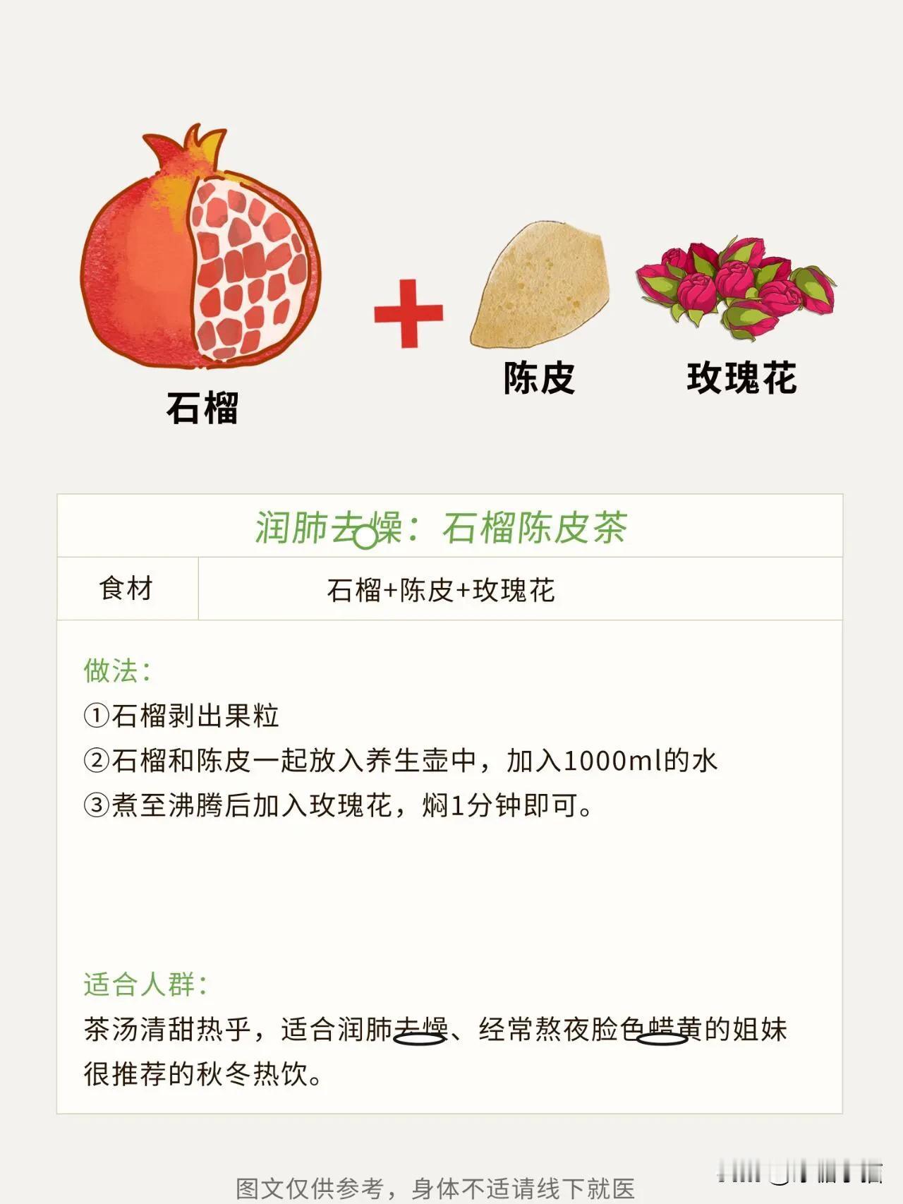 秋季素颜饮,女孩子常喝4种石榴水|气色好 秋季🍂口干舌燥、皮肤干燥的姐妹 建议👉秋季一定要喝这杯润润的石榴水 石榴是k氧化的一把好手💪,且性温,味酸而甜,对脾 胃友好,又yang 肺 润 肺 好喝养气色~ 总结了适合秋季的4⃣种石榴水做法,养生姐妹们码住啦! #食疗养生水果茶# #润燥的茶饮# #元气满满气血茶# #雪梨山楂百合饮# #百合梨饮# #早c晚a水果茶# #苹果玫瑰枸杞茶# #下火急救果蔬茶# #冲泡枇杷秋梨饮# #养颜补气茶#
