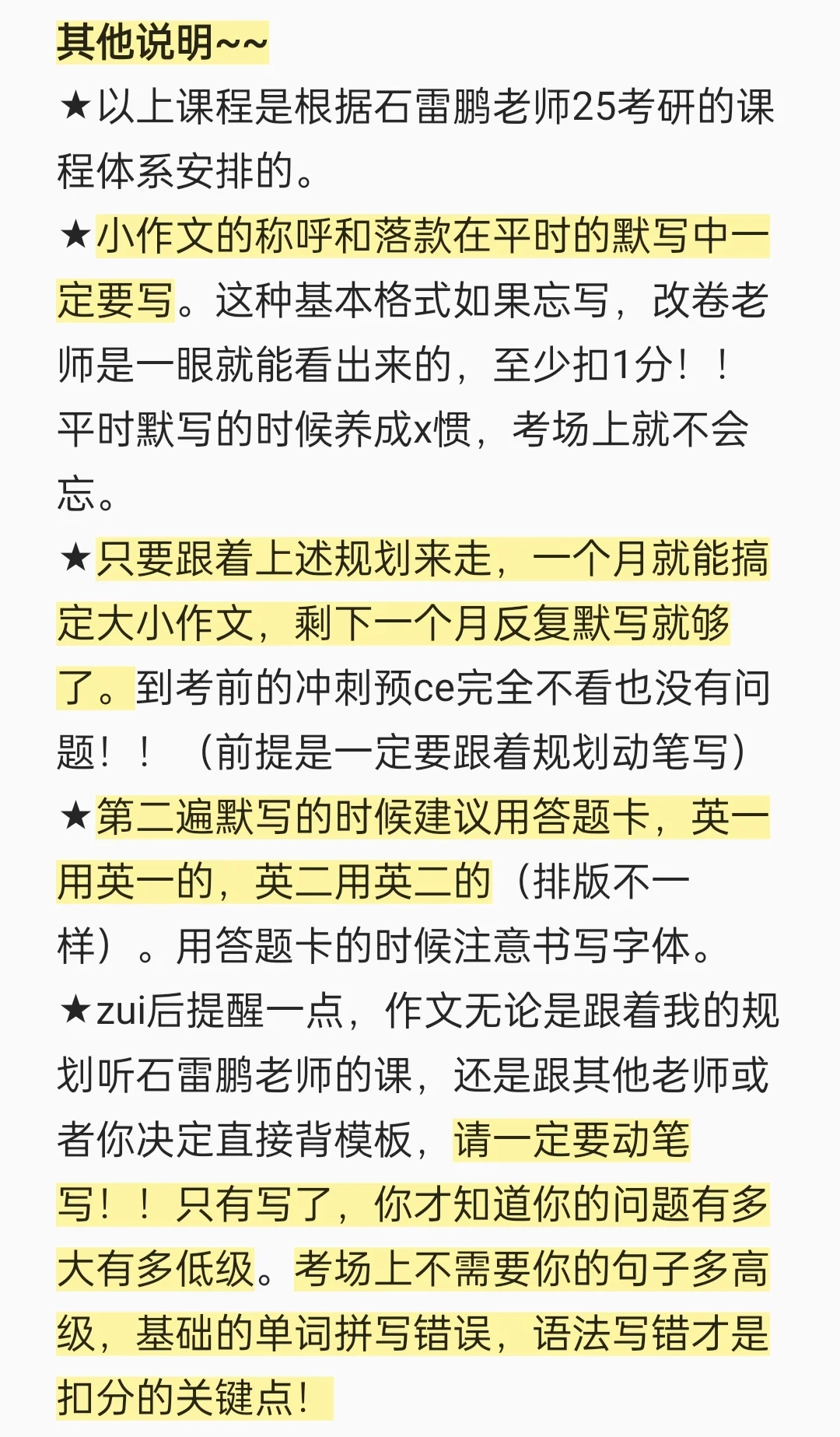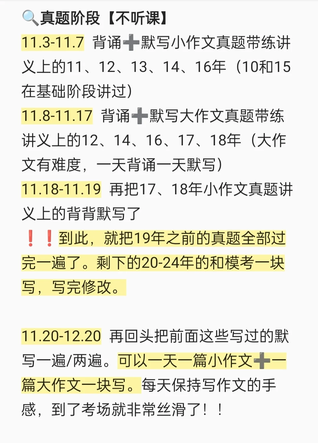 ⏰11.3-11.7 背诵➕默写小作文真题带练讲义上的11、12、13、14、16年(10和15在基础阶段讲过)