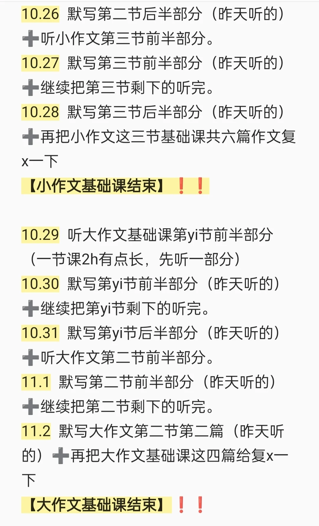 ⏰10.31 默写第yi节后半部分(昨天听的)➕听大作文第二节前半部分。