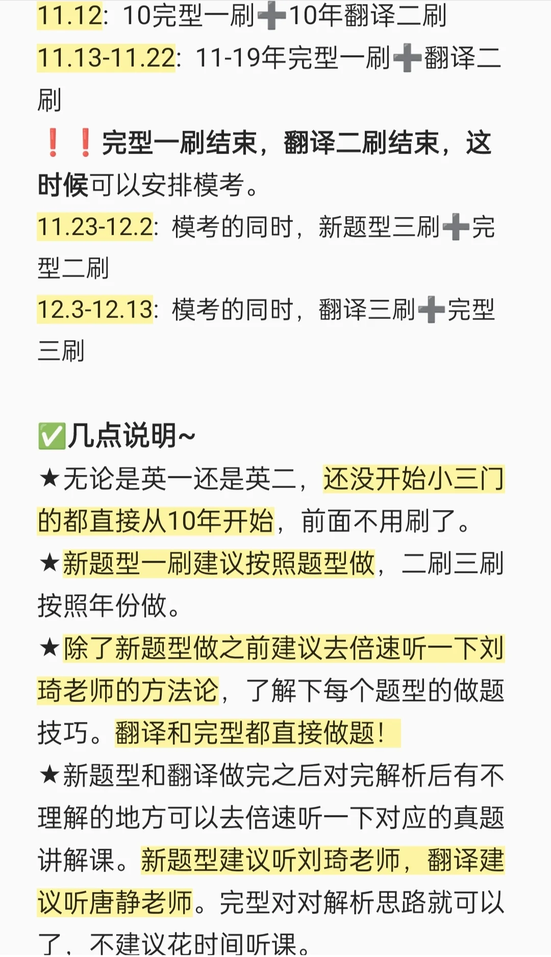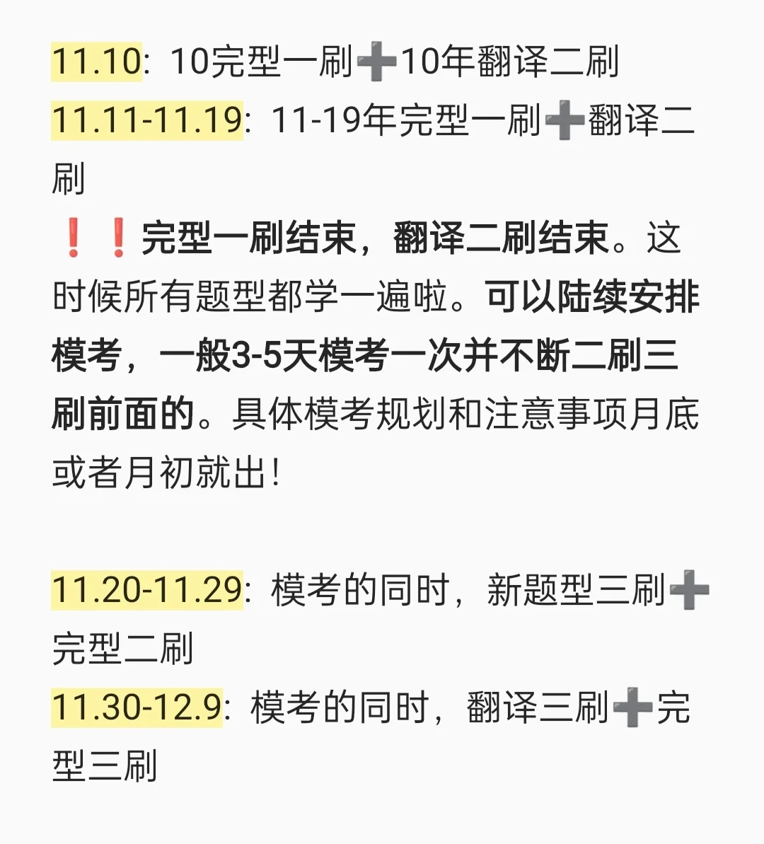 halo宝子们,已经10月底了,马上进入11月。十一月有个重要的事就是进行模考!但是题型没学完模考就没有意义,所以小三门还没学的同学要抓紧时间啦!别再拖了,跟着规划走还来得及!!