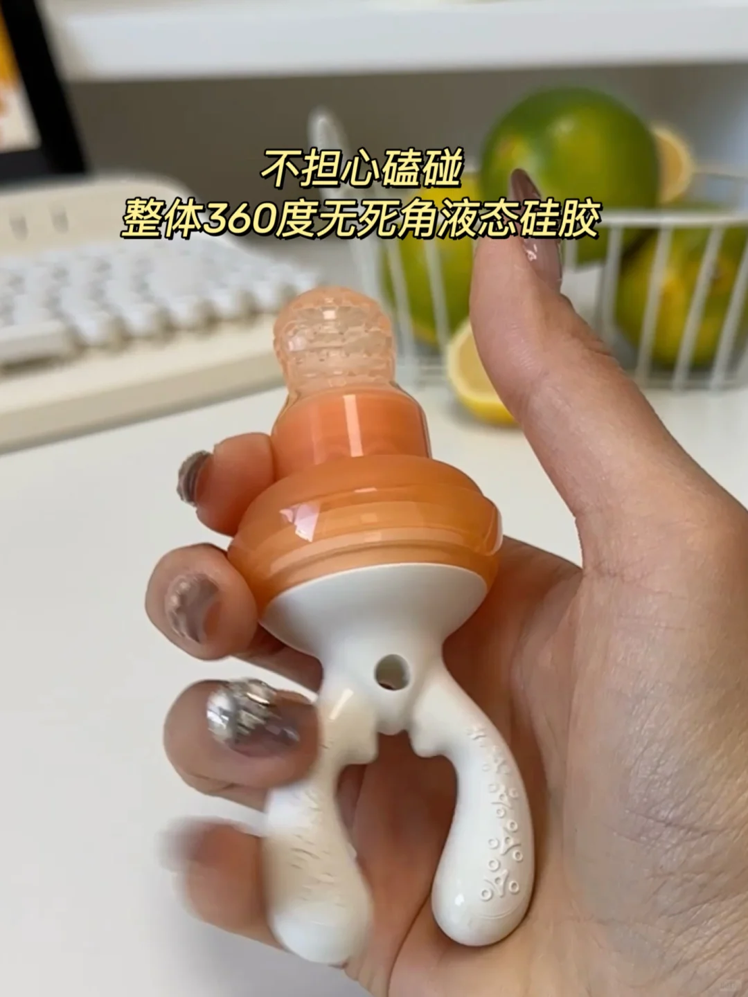 我们家宝宝现在用的佳尔优优小头盔咬咬乐,🪖就是我这么精挑细选给宝宝安排的,从我开始给宝宝添加水果的时候我就用上它了,👏因为它里面自带一个小弹簧,宝宝咬的时候可以一点点把果肉往上推,这样可以让宝宝充分咀嚼里面的果肉,避免浪费问题。