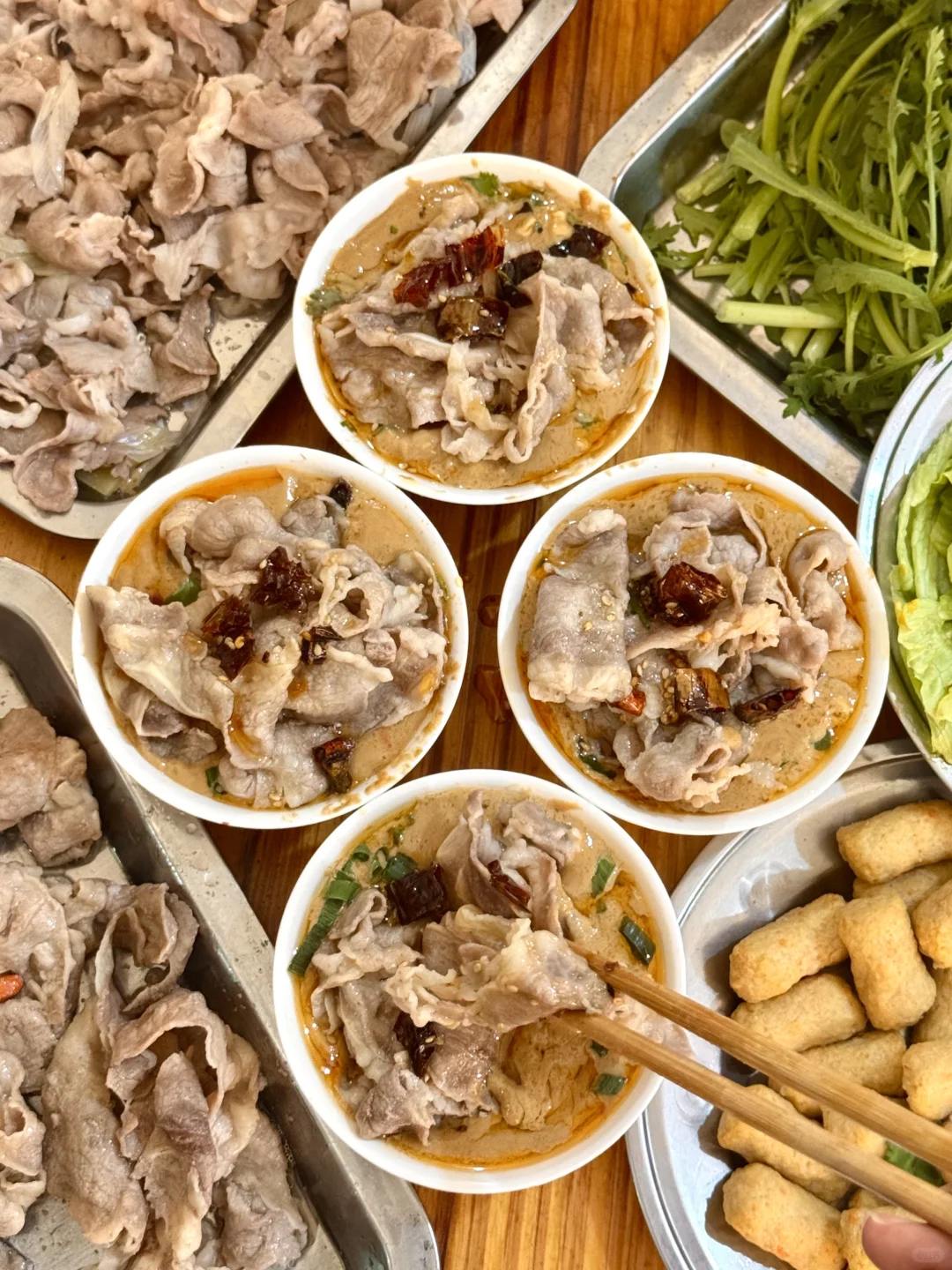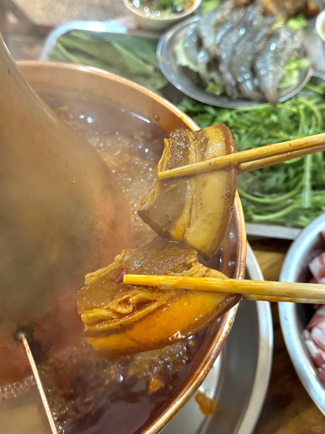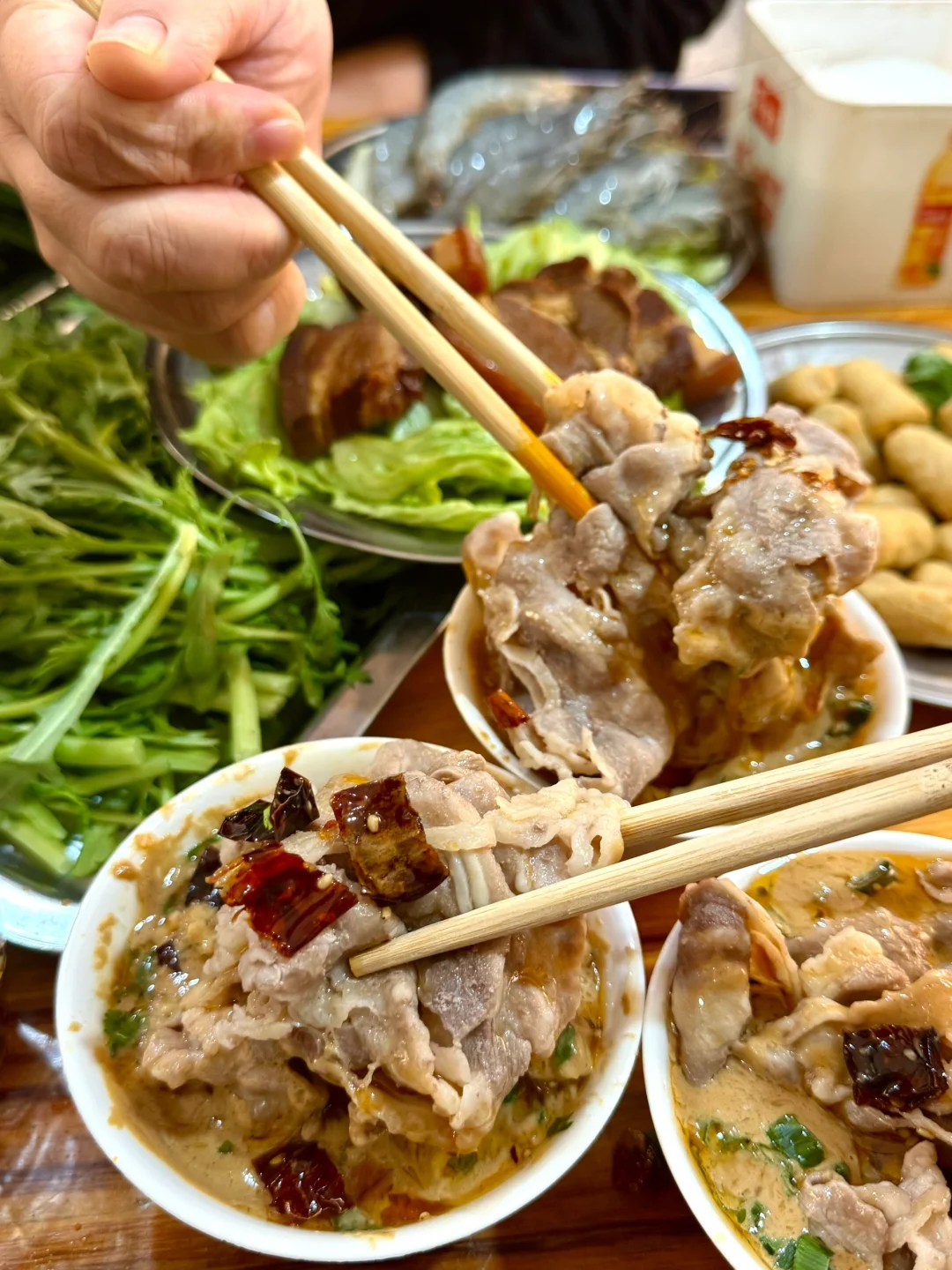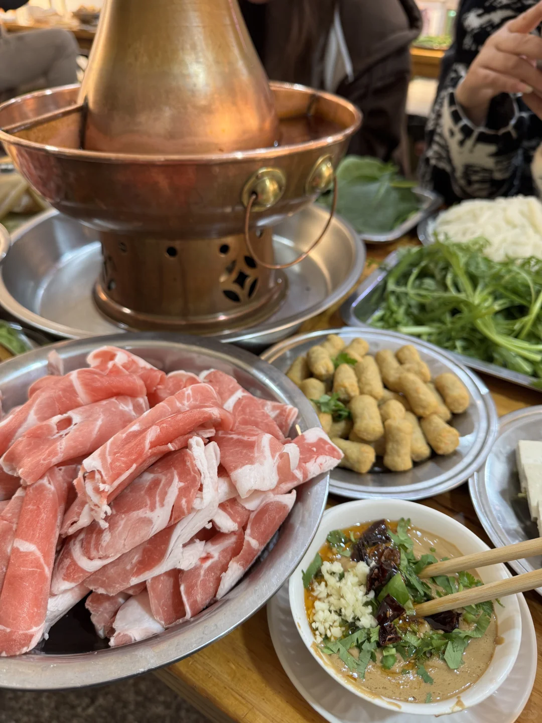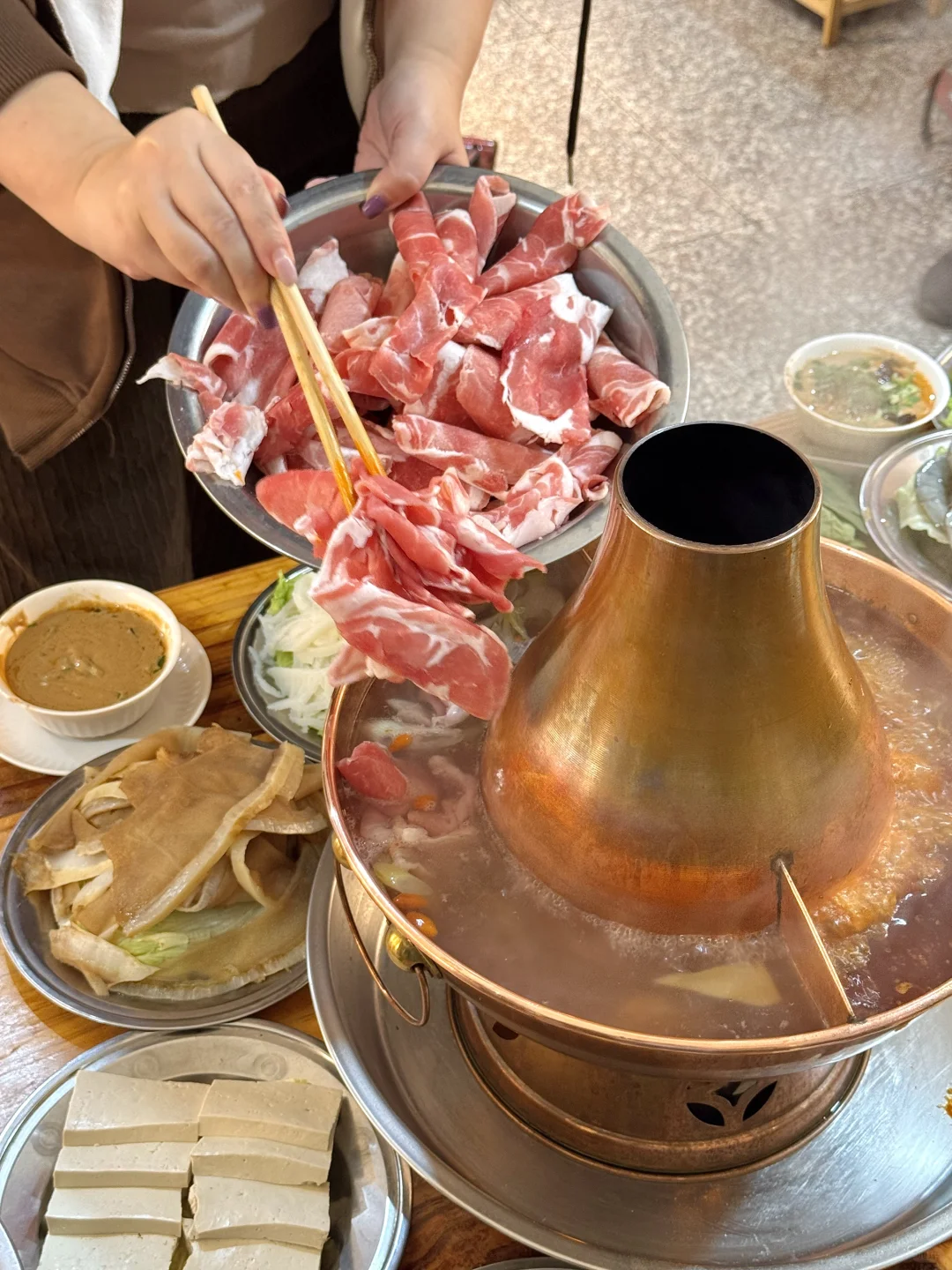 跟着老济南人来吃的馆子真的没错! 饭点都坐满了人,而且吃铜锅还可以吃到鸳鸯锅!!!!吃辣星人太感动了🥹🥹🥹 羊肉牛肉都很新鲜,量也很大~ 蘸料是山东人很喜欢的正宗的黏稠的麻汁酱! 坐着马扎子吃火锅,烟火气十足,太得劲儿了!