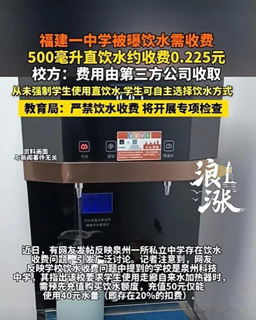 最近有网友发帖,说一中学喝直饮水要花钱,还得先充钱。