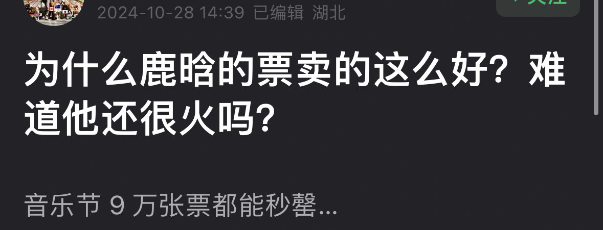 鹿晗的票销售如此火爆,9 万张音乐节门票能秒罄,这无疑证明了他依旧拥有着极高的人气和强大的号召力。他的音乐才华和独特魅力从未褪色,依旧能吸引众多粉丝的喜爱与支持,这就是他还很火的最好证明。#鹿晗##音乐节门票#