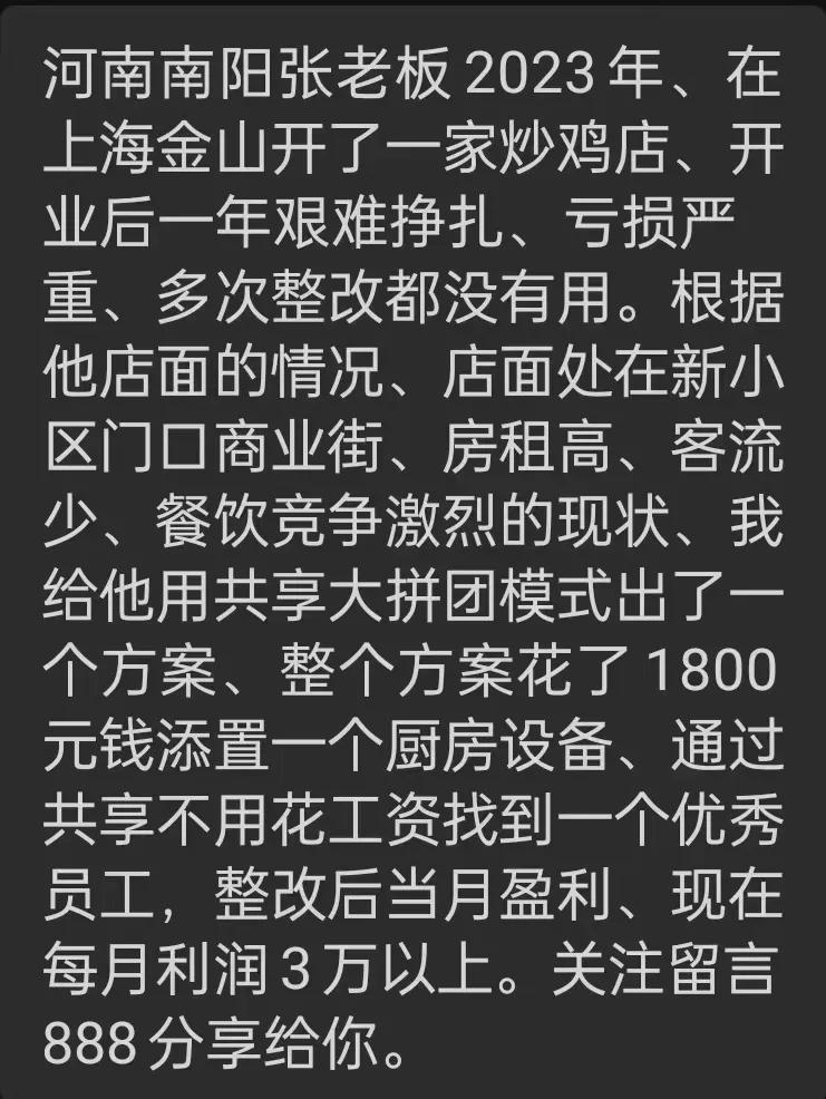 餐饮寒冬背后的“五大陷阱”才是餐饮不赚钱的真相 餐饮人看到的是餐饮越来越难干、殊不知背后的五大暗潮:第一:高房租面对低客单价、餐饮房租占比由20年前3%左右、现在许多已经超过10%、面对高房租、客单价低的产品、无论你的产品是不是刚需、客流再好、也要远离。上海一二类商圈、一些个体餐饮基本都退出、像传统的拉面馆、羊肉汤、煎饼等已经吃不到。 第二:高人工面对低效率、人工是餐饮行业的最大费用、不管是厨师、服务员还是老板自己给自己打工、10年前工资占比15%左右、现在大部分超过20%、如果工资占比超过25%就可以定为亏损。 第三:高流量面对低低价值服务、客流少、营业额低、搞活动做流量成了餐饮老板们的救命稻草、拼命学抖音、做美团、小红书等、什么一店6开、结果折腾半天、赚来的是人流、钱都流到别人的钱包。餐饮缺的不是流量、是你给顾客带来的价值、是留客、锁客、成交、裂变的能力、后面这些没有、流量越大死的越快。 第四:小商圈面对多家店、餐饮现在最大的问题是客源相对减少、随着房地产的发展、各城市都在摊大饼、人流不断分散稀释、每一个商圈的餐饮店都在增加、餐饮的属性决定、只能服务周边客户群体、店多客少成了餐饮行业的死结、大家为了抢夺有限的客源、就拼命打价格战、最后是鹬蚌相争渔翁得利。 第五:传统思维面对新消费、现在赚钱的餐饮有品牌连锁店、口碑好的传统老店、模式好的新生代餐饮、凡是用传统思维开店的都逃脱不了被取代、有的是靠打价格战、靠做流量自己把自己干倒、例如:网红店、还有传统的面馆、麻辣烫、火锅等。 餐饮店万变不离其宗、它的底层逻辑不会变、保证自己有利润的情况下、满足顾客餐饮需求的价值感。否则、就不是良性循环。