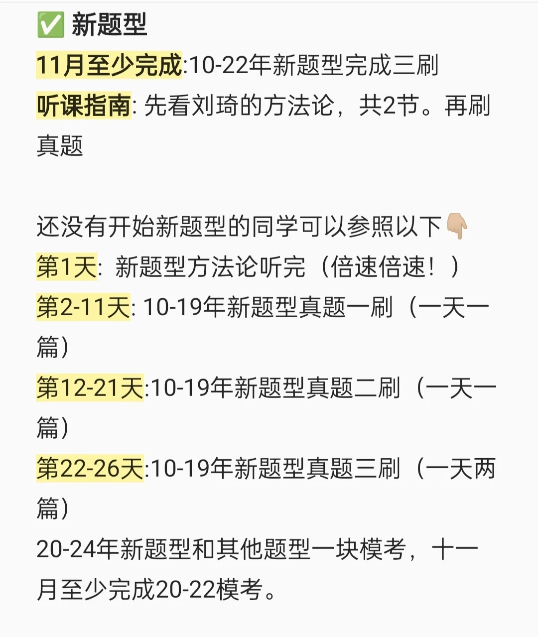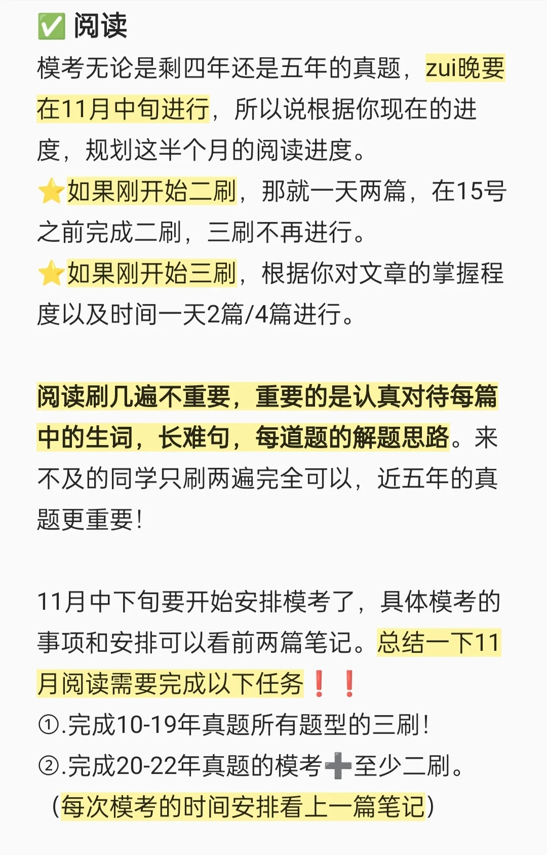 11月中下旬要开始安排模考了,具体模考的事项和安排可以看前两篇笔记。总结一下11月阅读需要完成以下任务❗❗