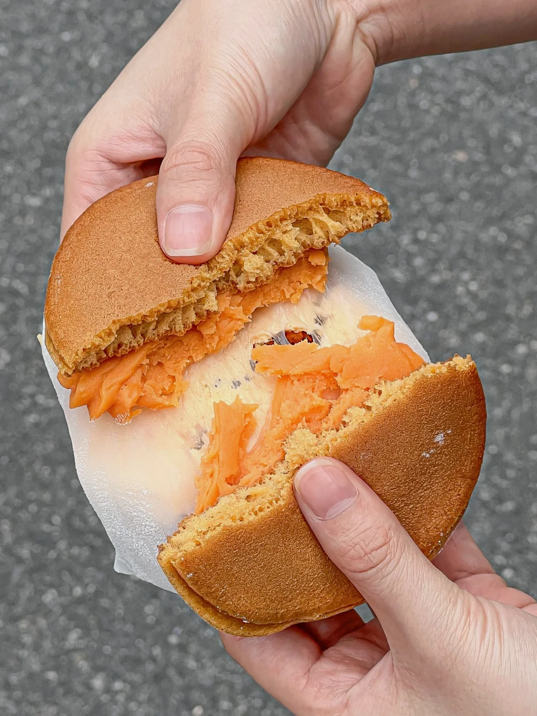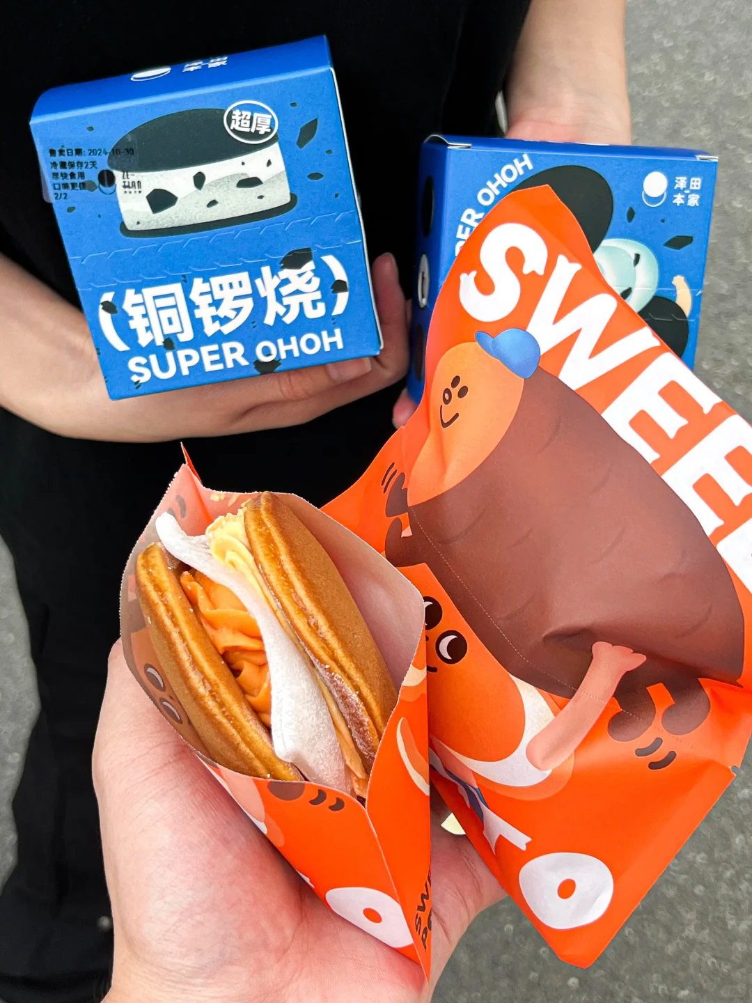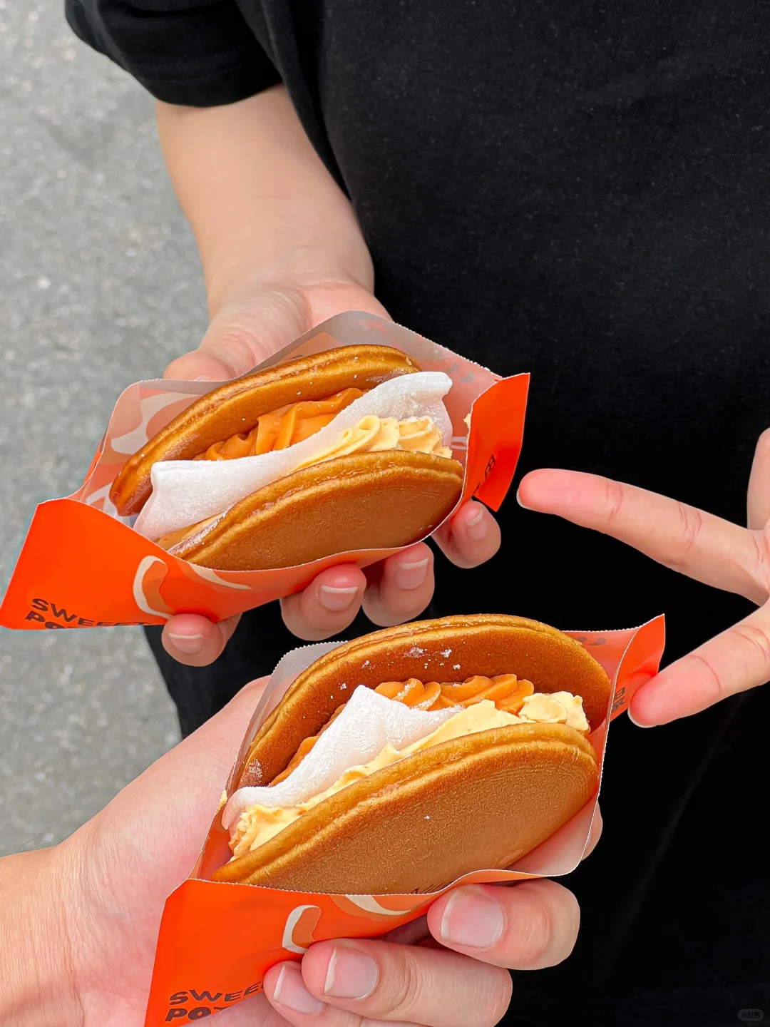 双薯狂喜啊!!麻薯+红薯泥糯叽叽的还很绵密 中间那层麻薯真的好弹,可以拉好长一段哎!! 整体的味道就像蜜蜜甜甜烤红薯一样,但是不会甜腻!!好吃😋 超厚奥奥铜锣烧也回归了,微咸甜口依旧好吃 现在还有搞怪🤪可以贴在手上的彩绘贴纸🖐🏻