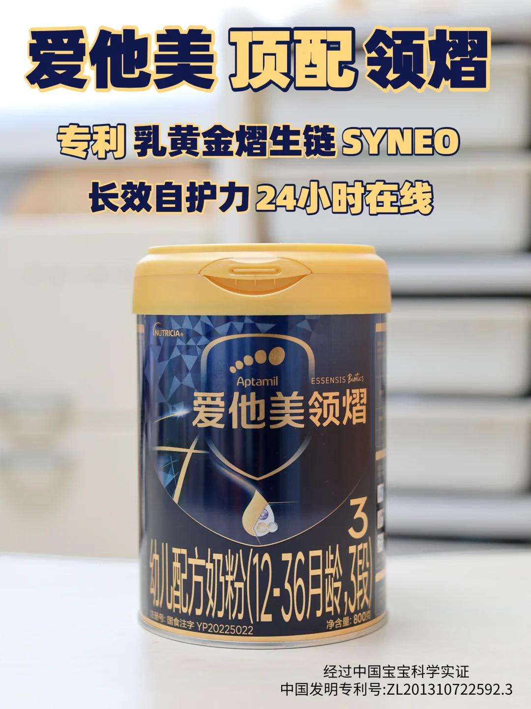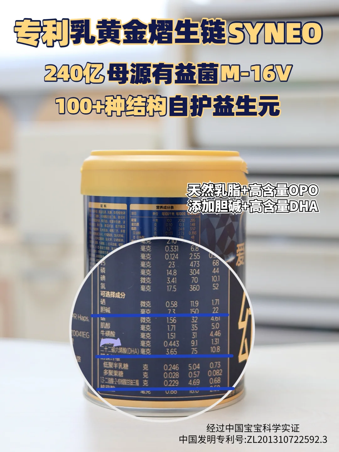 这款奶粉里面有爱他美核心自护配方专利乳黄金熠生链SYNEO,💫这可是由240亿母源有益菌M-16V加上100+种结构自护益生元共同构成,这对菌元可是经过中国宝宝科学实证有效的。