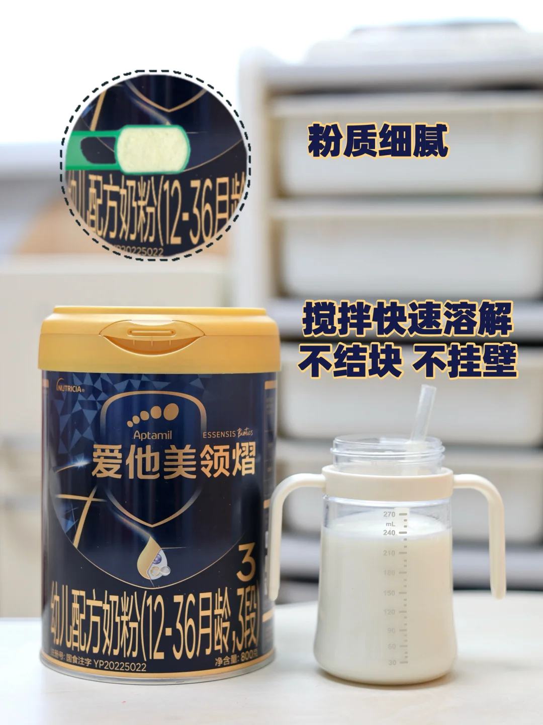 奶粉的粉质细腻,搭配搅拌棒轻松溶解,味道也是孩子喜欢的清淡口味,自从换了这款奶粉之后,我们家娃的奶量也高了不少,🍼孩子喝奶积极,体质壮壮的,营养丰富的奶粉帮助孩子铸造自护力长城。