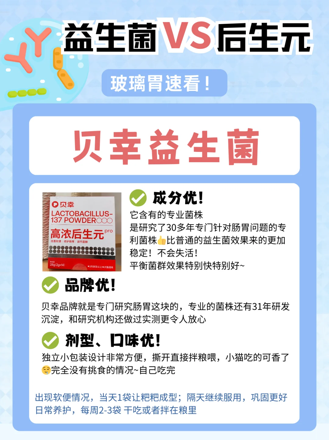👉🏻结合这些挑选法则以及自己这些年来的尝试与探索,我向大家推荐一款我目前在给狗狗吃的后生元——✅贝幸益生菌