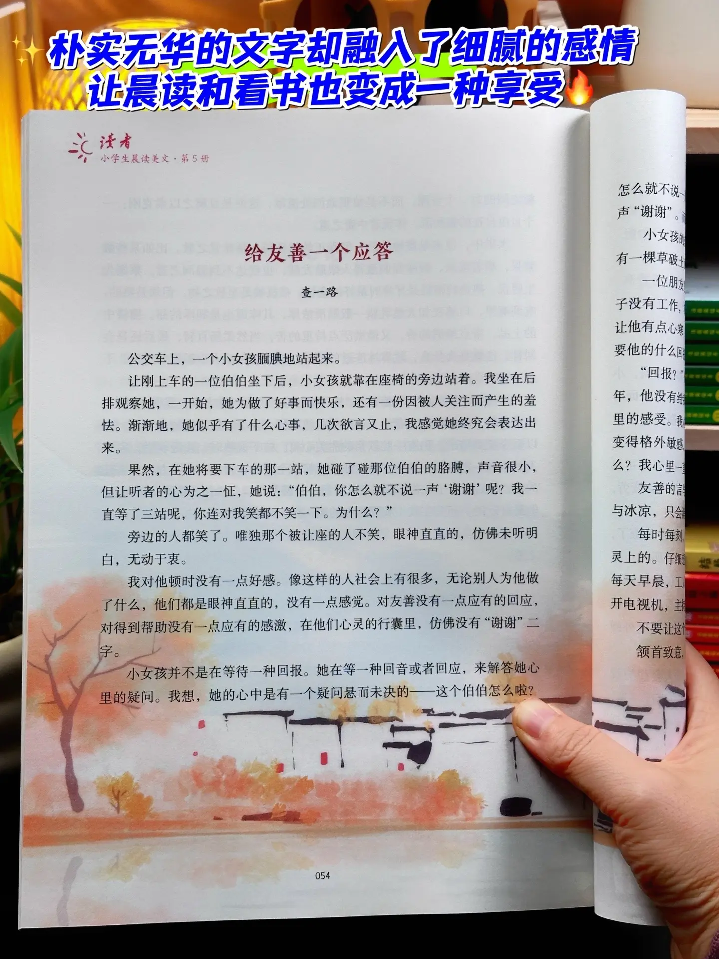 儿子早上晨读完,晚上又拿着看🥹。没想到读者专门给孩子设计的晨读美文,竟然真的让孩子爱上晨读,里面的文章篇篇经典,句句斟酌,每一个小故事都蕴藏了深刻的人生哲理,内容兼具文学性故事性,孩子爱不释手!