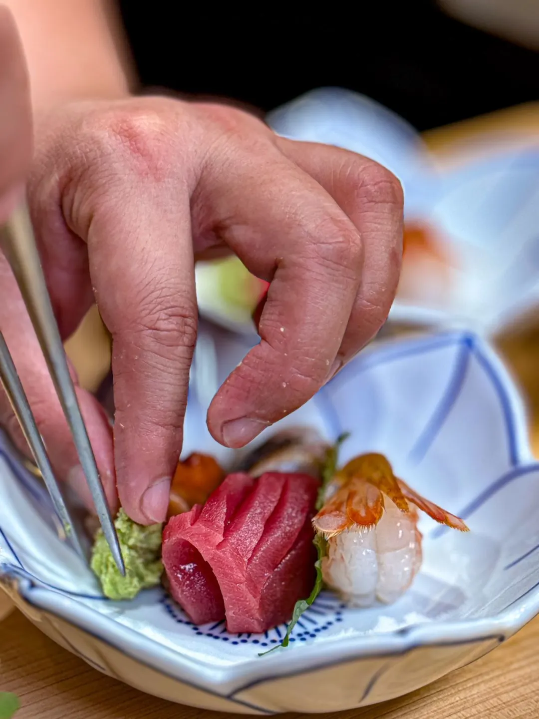 包括帆立贝,油墨鱼,比目鱼,鲑鱼,平政鱼,蓝鳍金枪鱼中腩等九种不同食材😎搭配