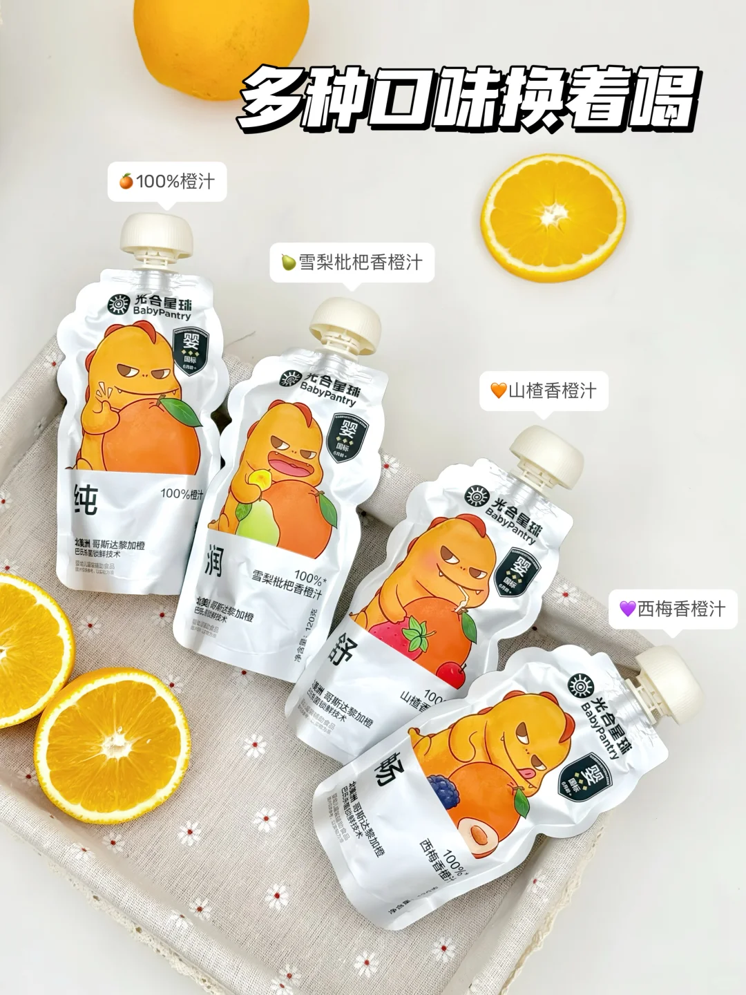 除了原味香橙汁,还有雪梨枇杷香橙汁,山楂香橙汁,西梅香橙汁,可以让宝宝喝到4种不同的口味