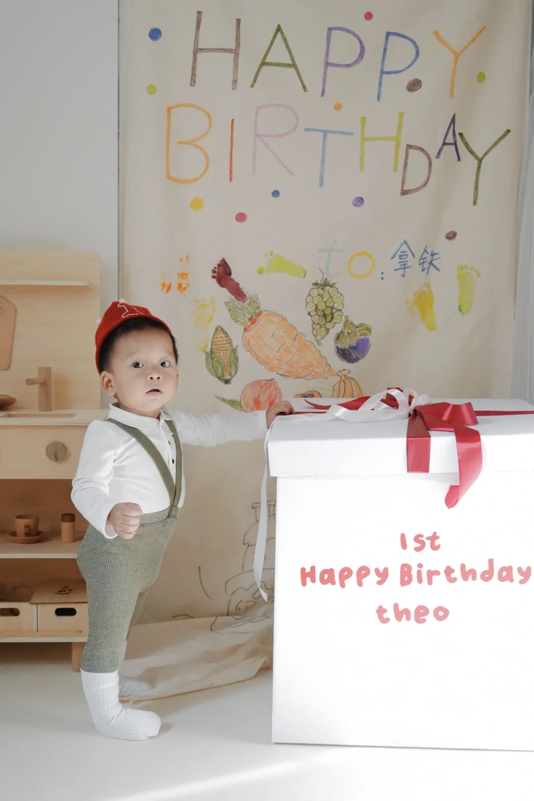 虽然拍宝宝这件事已经拍了整整一年 但是在他周岁这天 依然仪式感低在家记录了一番 简简单单 但是每个瞬间都不可复制 道具准备: 🔘礼物箱子 🔘手绘挂布 🔘周岁针织帽
