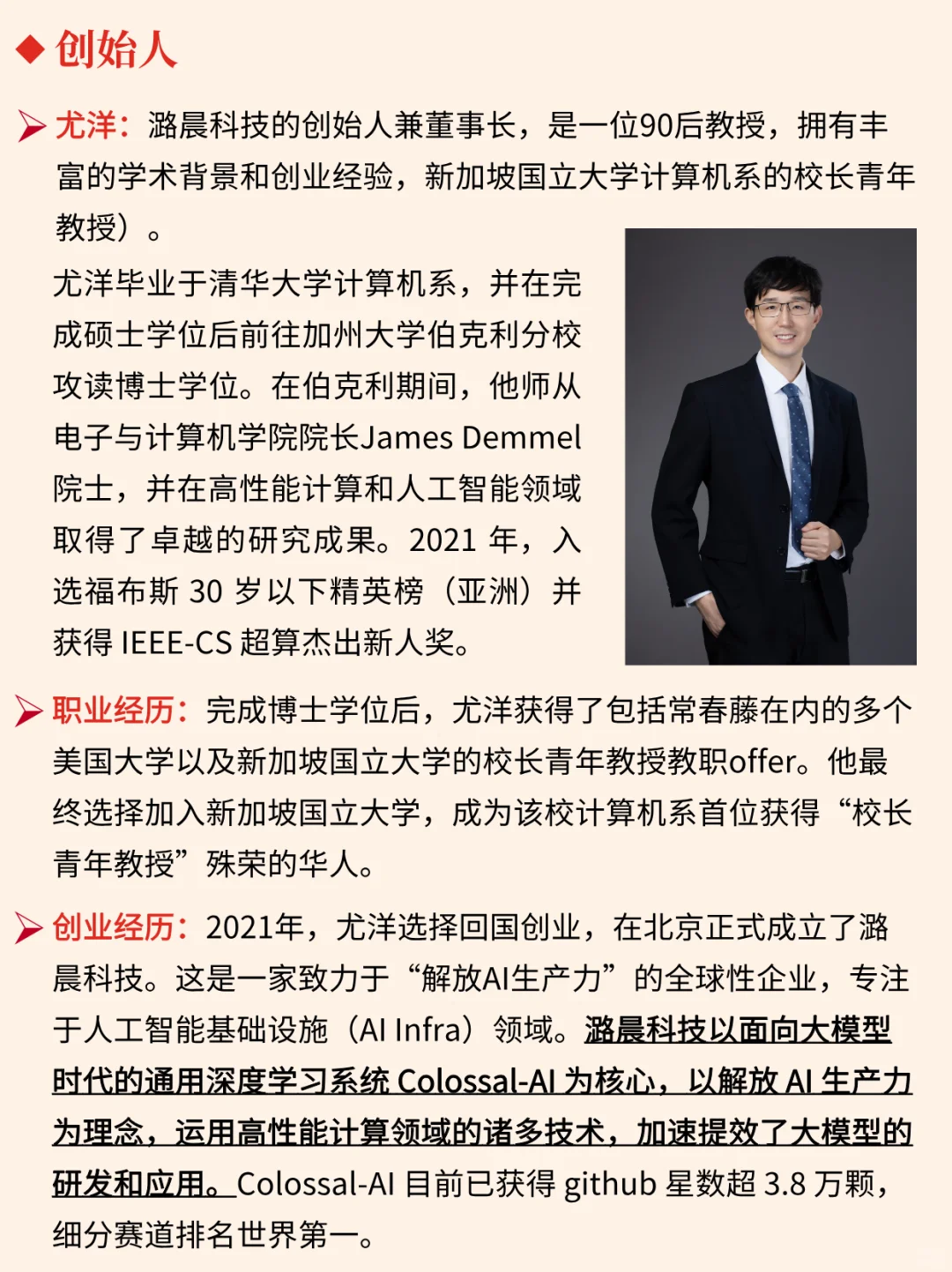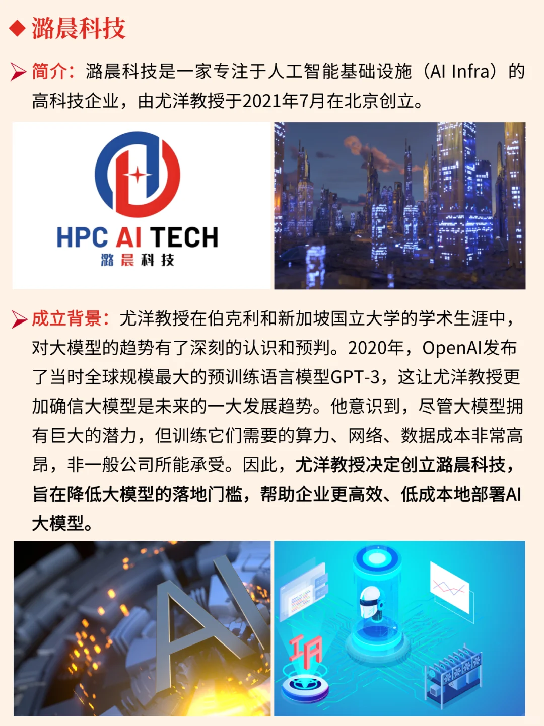 🌎 在人工智能的浪潮中,潞晨科技以其独特的姿态和创新的技术,站在了时代的前沿。💻这是一家由尤洋教授于2021年7月在北京中关村创立的公司,它不仅承载着创始人在分布式计算、机器学习、高性能计算领域的深厚学术背景,更肩负着解放AI生产力的使命。