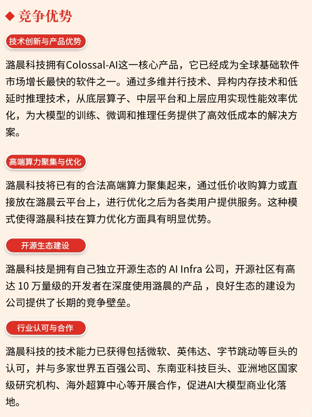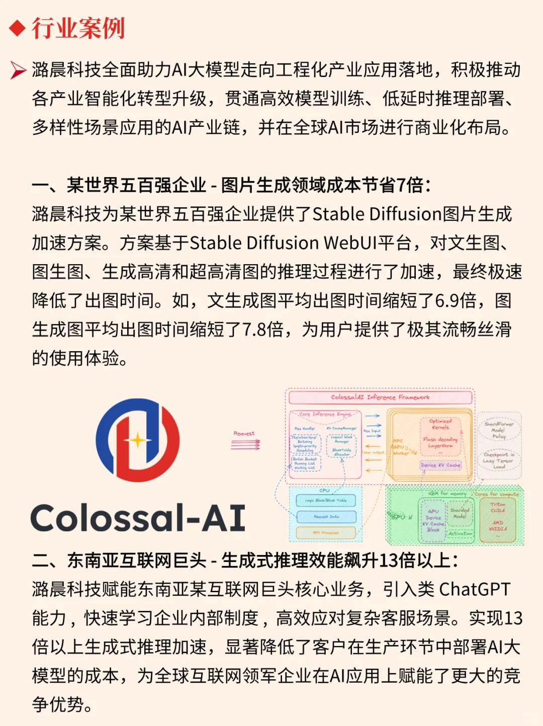🔥潞晨科技的市场地位和影响力,不仅体现在其技术创新上,更在于其商业化落地的能力。潞晨科技已与多家世界五百强公司、东南亚科技巨头、国家级研究机构、海外超算中心等开展合作,推动AI大模型在金融、医学、能源、零售等多个领域的商业化落地。这些合作案例,不仅证明了潞晨科技的技术实力,也展示了其在AI领域的广泛影响力。