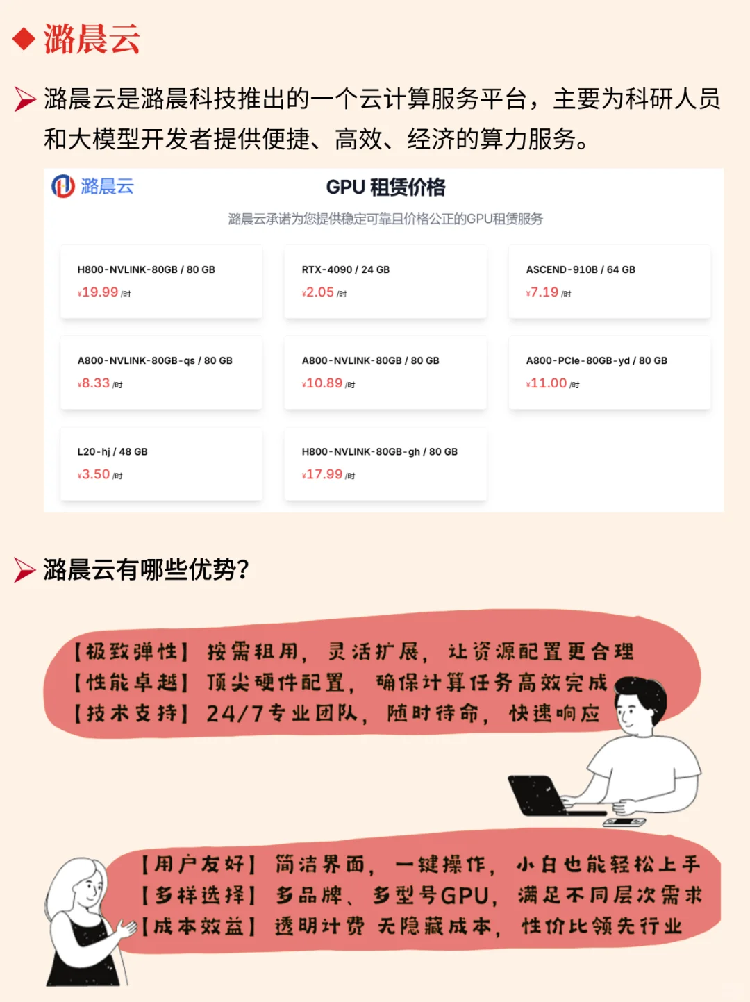 ☁️ 潞晨云,作为潞晨科技的云端服务平台,为用户提供了一个高效、稳定、灵活的云计算环境。它不仅仅是一个简单的云服务提供商,而是一个全方位的ML Ops平台,旨在简化模型训练和部署的复杂流程。潞晨云以其高性能的计算能力、灵活的资源扩展性和优质的技术支持,为用户提供了一个高性价比的云端服务平台,特别是在AI大模型的训练和部署方面,潞晨云展现了其独特的优势和强大的竞争力。
