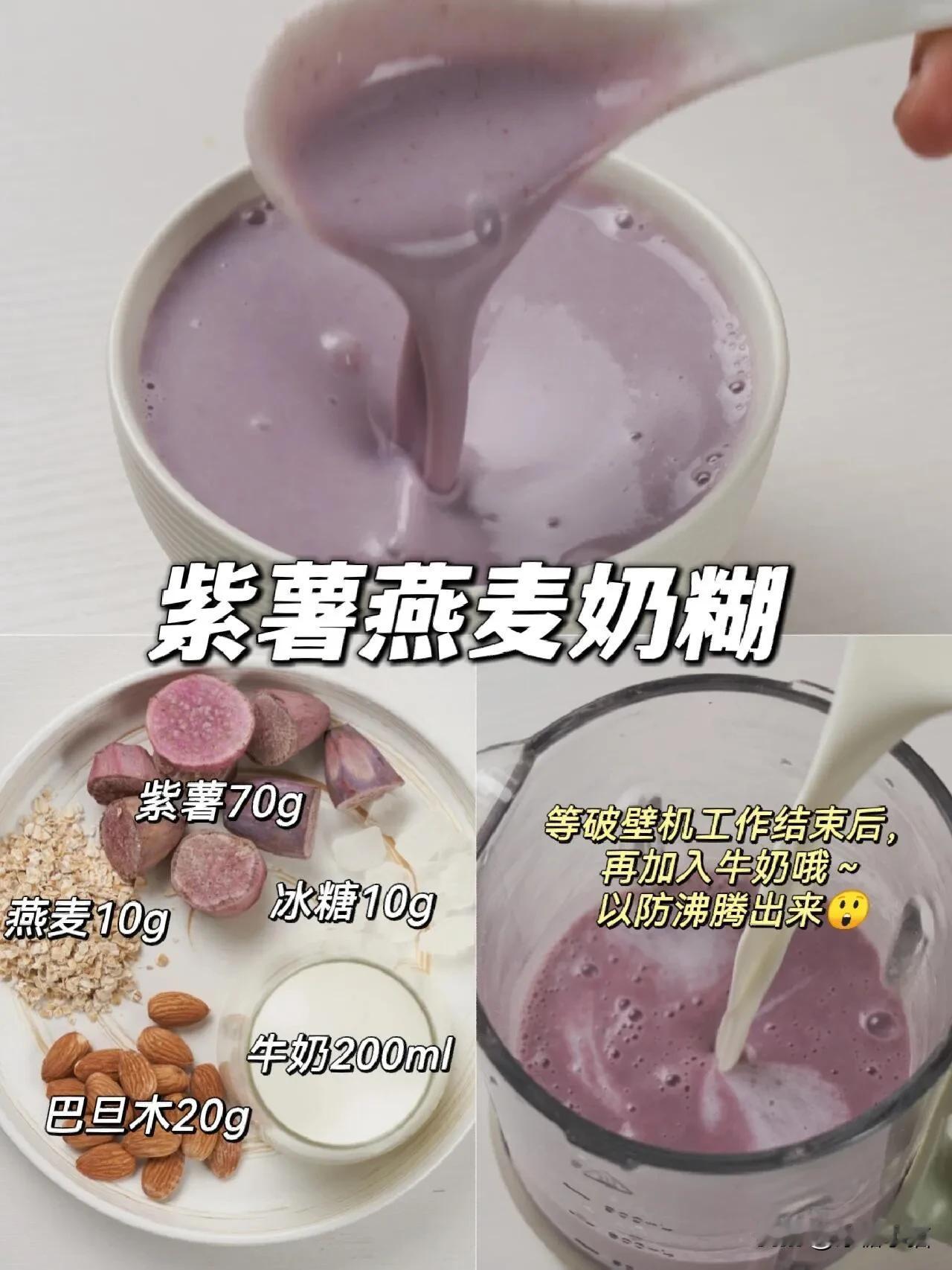 六款破壁机食谱,满满花青素🔥抗氧化绝了 脸色蜡黄的宝们,可以多吃点紫薯、蓝莓等富含花青素的食物哦 花青素具有超强的抗氧化作用‼️ 长期食用,养出好气色🤗🤗 我最喜欢的是用紫薯来打成米糊热饮喝啦~🔥🔥 把我经常喝的六款紫薯热饮分享给你们呐 一起变美吧!☺️ #早餐粥代餐# #代餐早餐粥# #膳食纤维豆浆# #代餐粉营养粥# #零蔗糖杂粮粥# #0蔗糖杂粮粥# #奶香紫薯燕麦糊# #金味低脂五黑粥# #黑米双色豆浆# #豆浆米糊五谷汁#