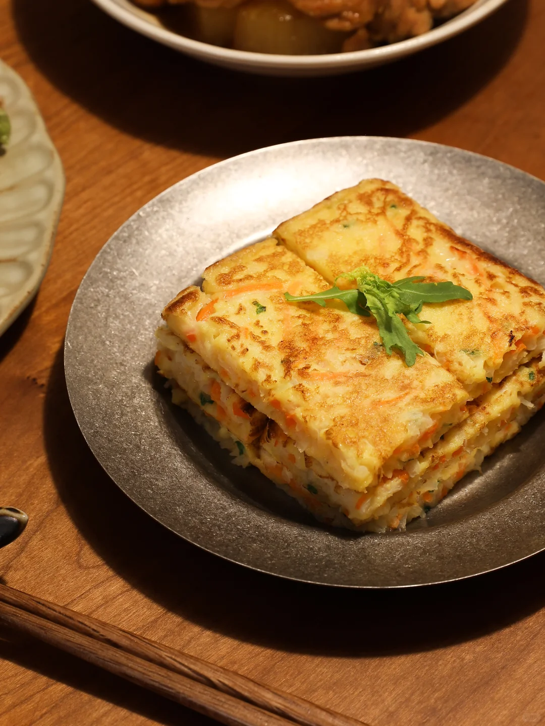 🥬食材:白萝卜200g/胡萝卜30g/鸡蛋1个/淀粉8g/面粉20g
