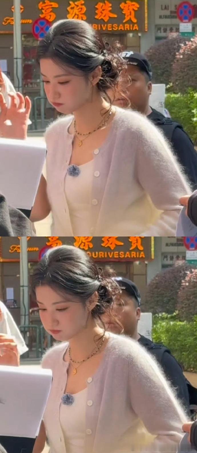 #王楚然线下是移动拍照景点# 针织开衫配牛仔裤,王楚然的穿搭太出挑,走过路过都忍