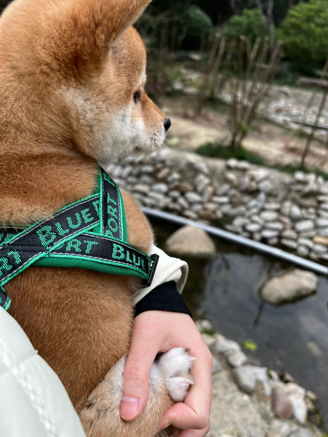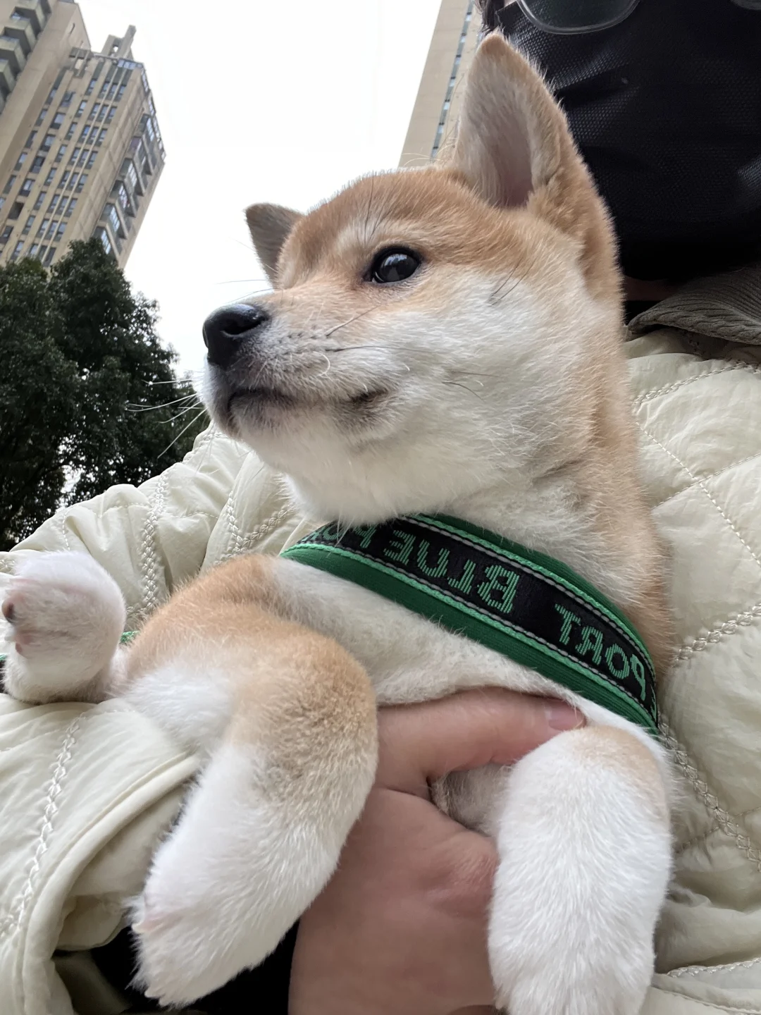 我家柴第一次去宠物用品店,把脸藏在我腋下,真的是窝里横