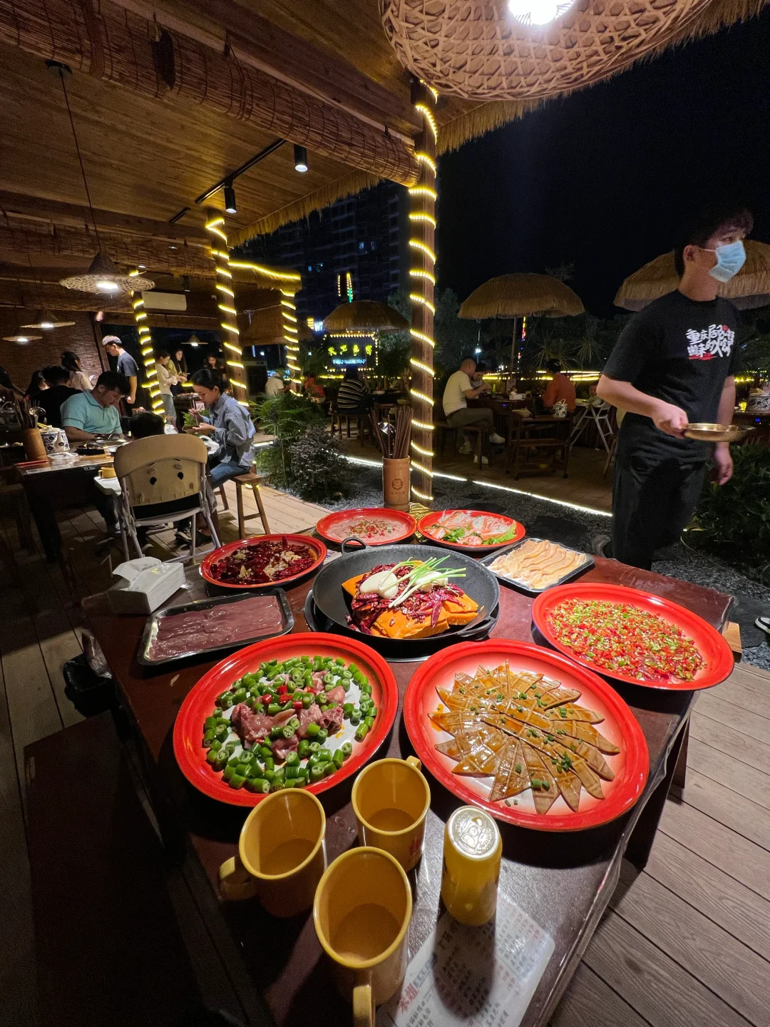 我晕了!那在天台上烟火气的气息!我der妈呀!就很好吃! 没想到真的这么平价,满满一桌,人均70都不到。 就在同安乐海附近,凤岗路! 点的红汤!那种辣,让我回想两年前的重庆老火锅! 真的是过瘾,越煮会越香~味道是越来越浓! 它家“麻辣毛毛虫鱿鱼卷”和“双椒牛肉”真是一绝,麻而口感又好。 如果吃不了辣,还没吃之前建议点招牌的“杨梅冰汤圆”汤圆糯叽叽,杨梅很清甜,解辣必备!!! 霸王蟹柳、大刀腰片、雪花猪肉都是很新鲜,分量还很大。 和朋友吃着相当过瘾,结束给嘴唇上了唇膏,真的够值得的hhhhh