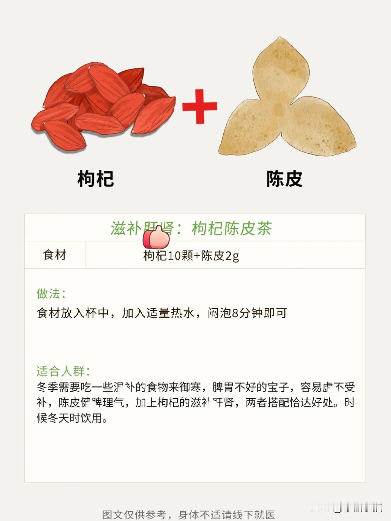 立冬滋养|保温杯里泡枸杞加一物,好上加好 立冬至,天气渐寒❄️,万物进入休养、收藏状态。 人也应顺应自然,温补养☀️,养精蓄锐 👀到了保温杯里泡枸杞的时候 学会这4种搭配,👍好上加好~ 人参枸杞多宝茶 黄芪的茶饮方式 麦冬滋阴养颜茶 黑枸杞黄芪茶 桂圆枸杞菊花饮 元气满满气血茶 体寒茶饮 人参枸杞八珍茶 每日一杯枸杞茶