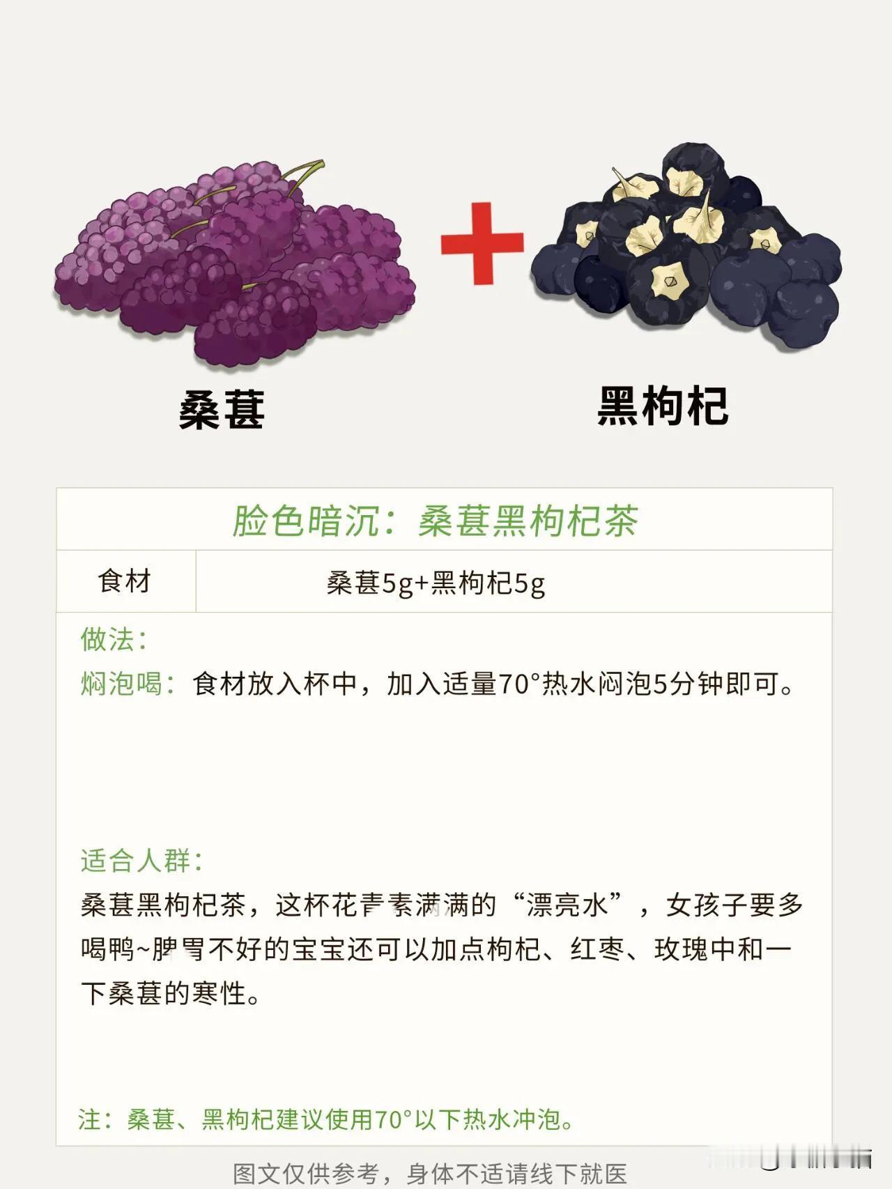 立冬|桑葚搭配,冬藏多吃这味✨“藏.精果” 肾主藏jing,冬气与肾气相对应,养shen精也就成了冬天养生的重要一步✅。 . 桑葚是📖古书里的“藏.精.果”,养月干.肾💭之.阴。 熬夜、掉发多、脸色暗沉的姐妹,冬季泡热茶,🍵试试这杯桑葚茶~ 黑枸杞黄芪茶 麦冬滋阴养颜茶 人参枸杞八珍茶 人参枸杞多宝茶 黑豆黄精淮山茶 元气满满气血茶 听说喝了补气血 营养当归茶 百合桑葚茶