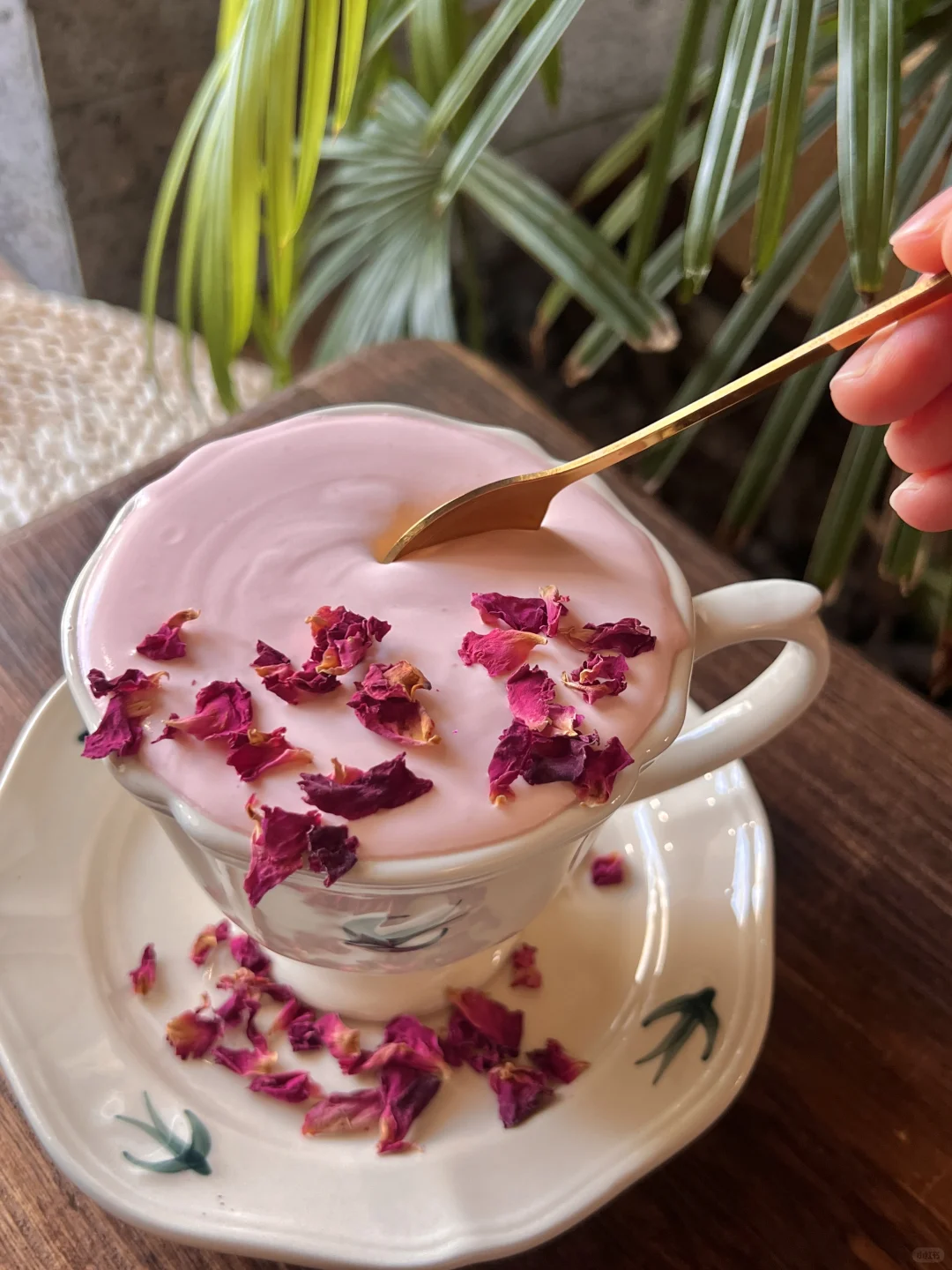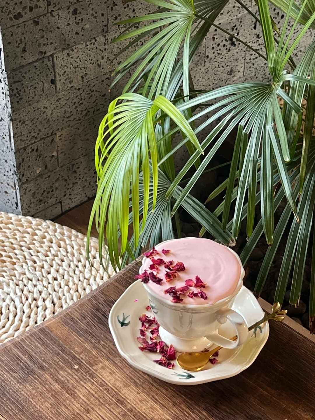 东四那边的小胡同,太宝藏了! 店里一步一景的感觉,点位置选了半天,感觉哪儿哪儿都好美! 点了朱朱白白,点它是因为好看,没想到味道远超颜值! 椰子味的司康,小小一个,温热的,也好吃!