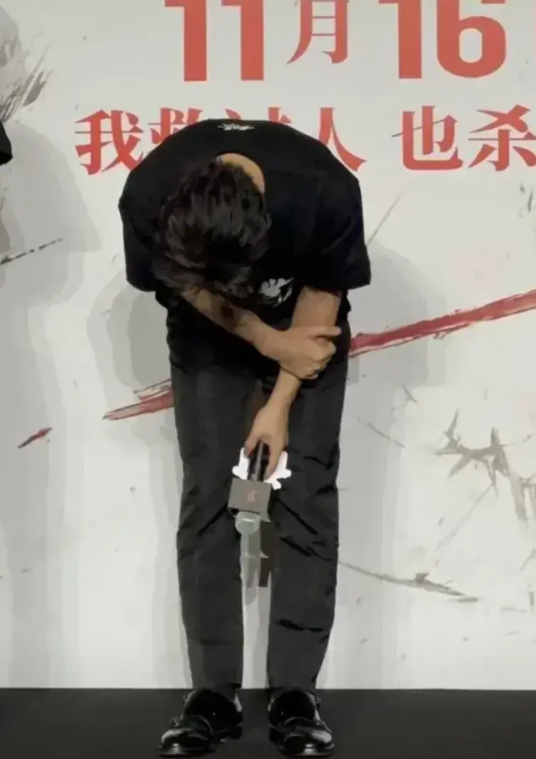 黄晓明鞠躬致歉! 他低下头颅迟迟不愿抬起 足足有10秒左右 男人能决定这样做 可