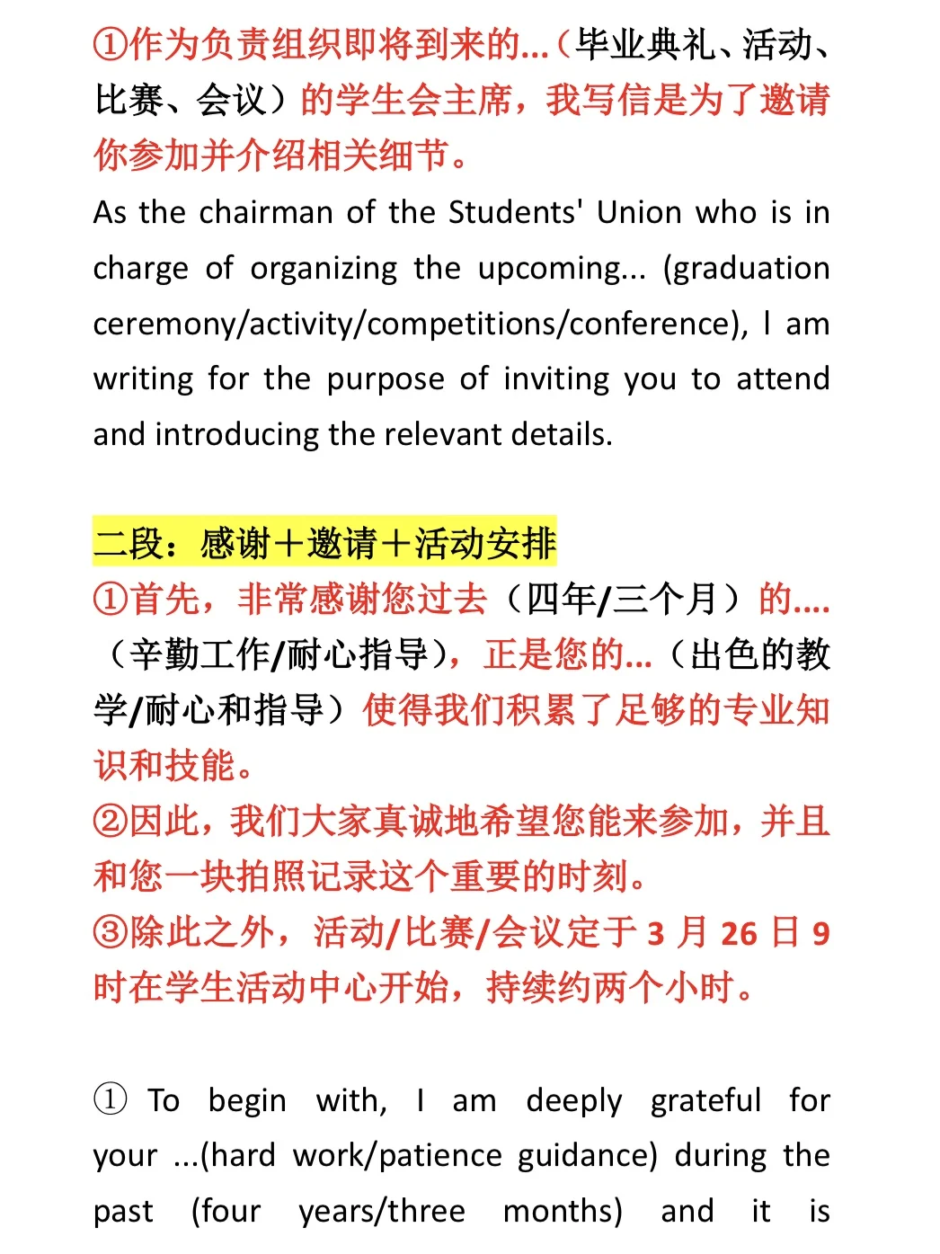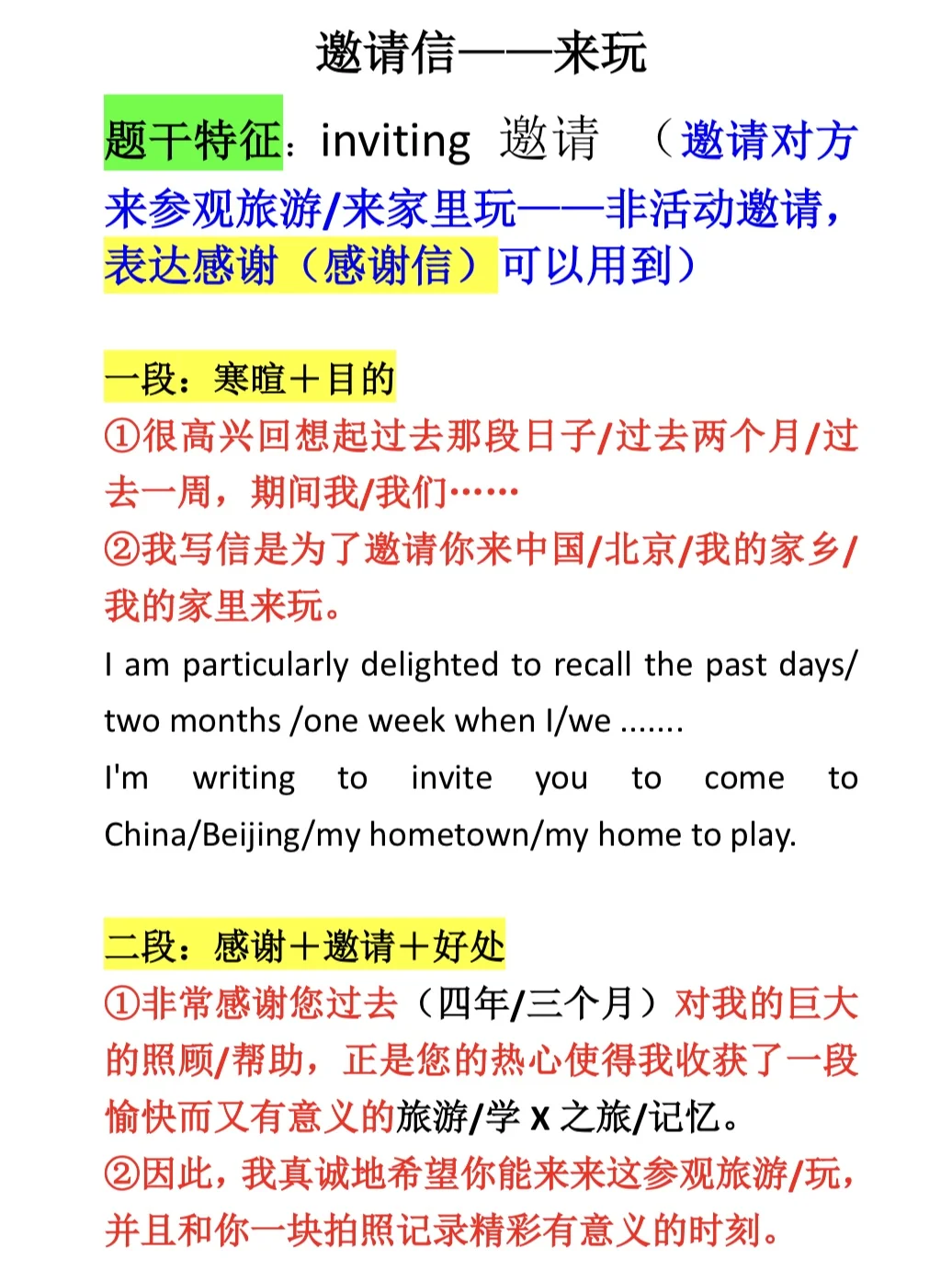 📖邀请信很多年份都考的是邀请对方来参加活动。但在感谢信里面也会有邀请对方来玩的话术。所以我都整理上啦~