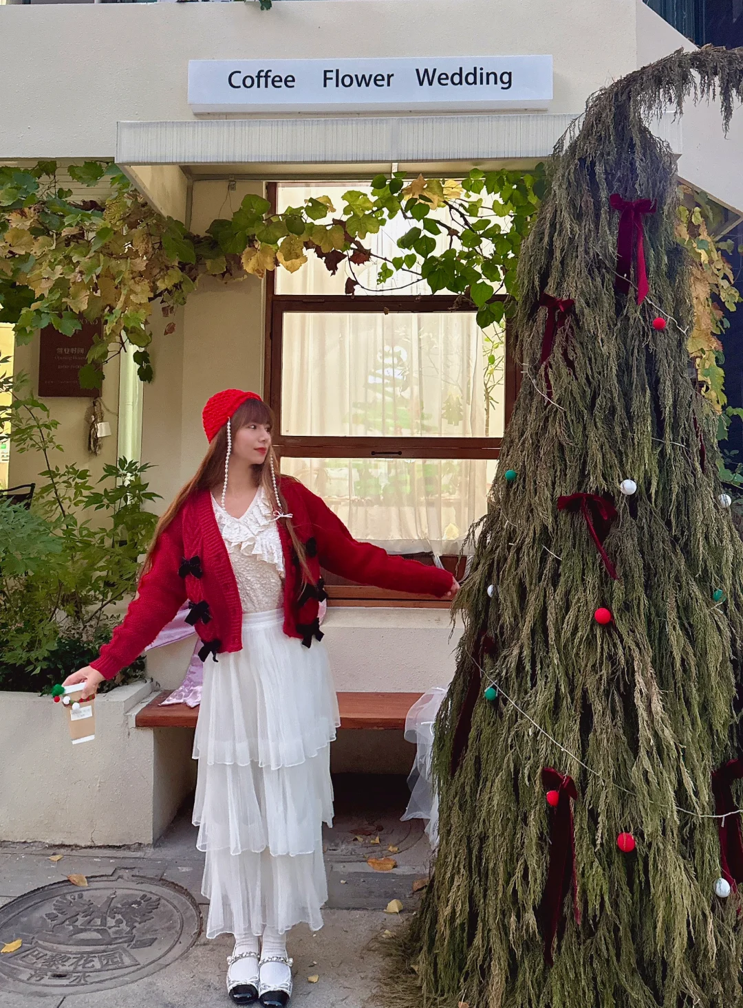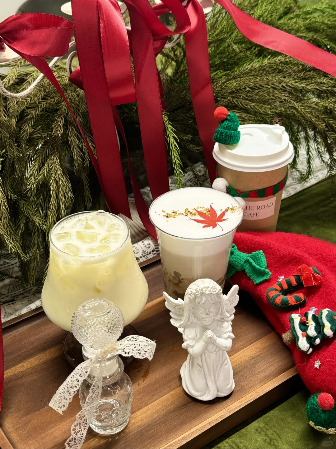 就在巴黎花园里面 门口的圣诞树太吸睛啦🎄 冬天一杯暖暖的栗子芋泥拿铁 玫珑蜜瓜酸奶🍈特别清爽 圣诞布置拍照好好看