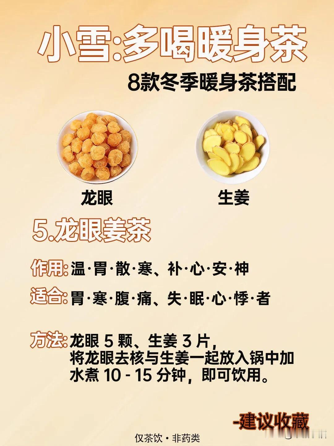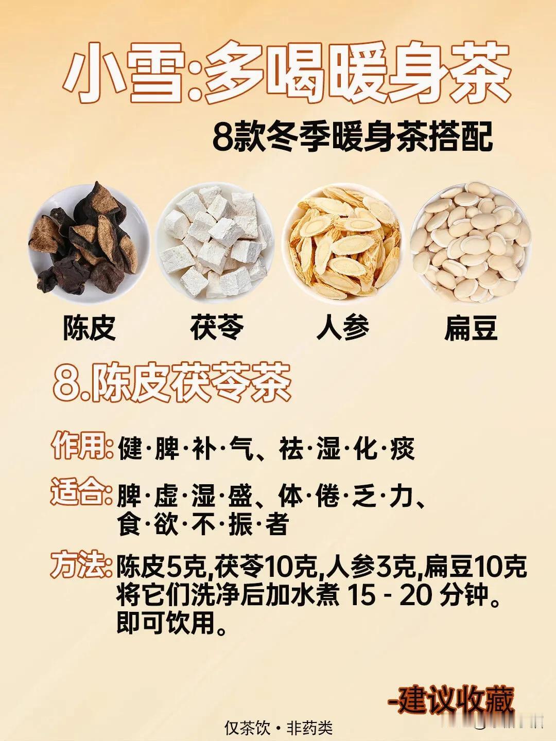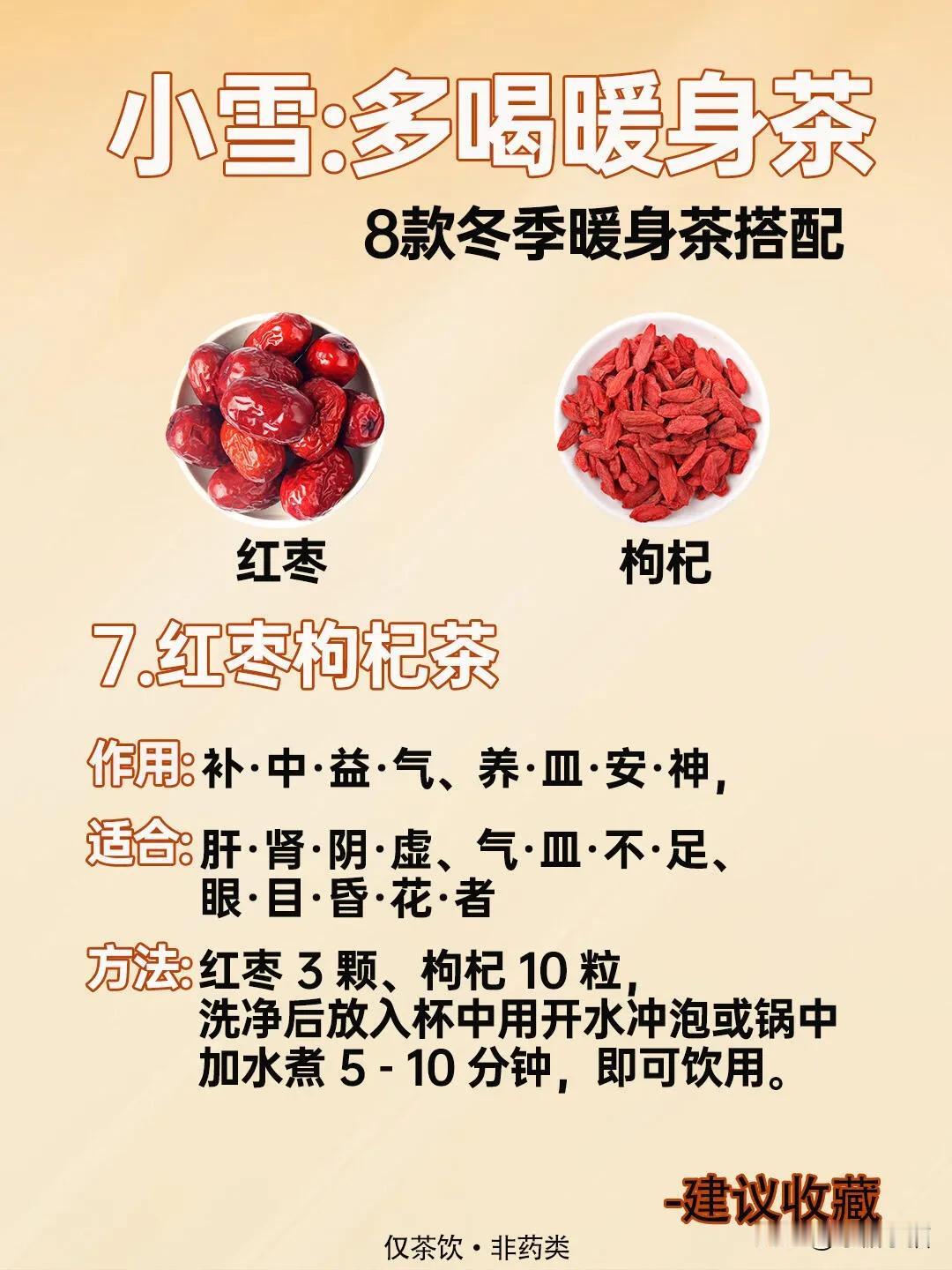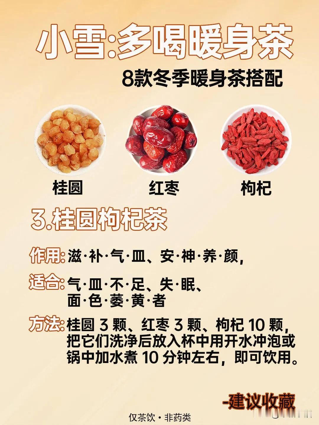 ❄️小雪至,寒渐浓 | 冬季暖身茶饮指南 宝子们,小雪节气已悄悄来临,凛冽的寒风是不是让你开始瑟瑟发抖啦?别担心,贴心的我为大家准备了八款超赞的冬季暖身茶,让你无惧寒冷,从舌尖暖到心田。 桂圓紅棗枸杞茶 壹葫茶养生茶饮 元气满满气血茶 养生茶话不间断 入冬第一壶茶 茶话弄暖冬 尚煮轻养茶 壹葫茶养生茶饮 一款治愈系的茶 没事喝什么茶 建议饮用这款茶 暖胃茶叶 大养茶美空间