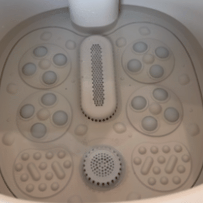 桶内有16个按摩头,就像真人对着脚掌的穴位来回的按压推拿。按个五六分钟就感觉白天的疲惫一扫而空,连睡觉都特别安稳。