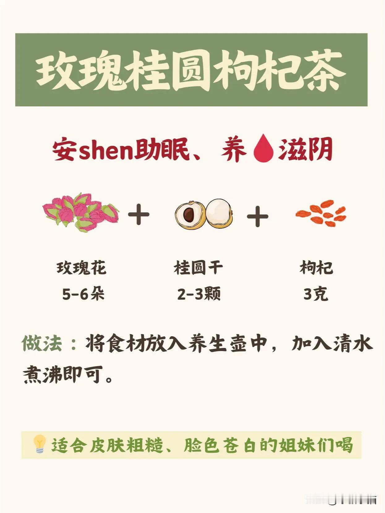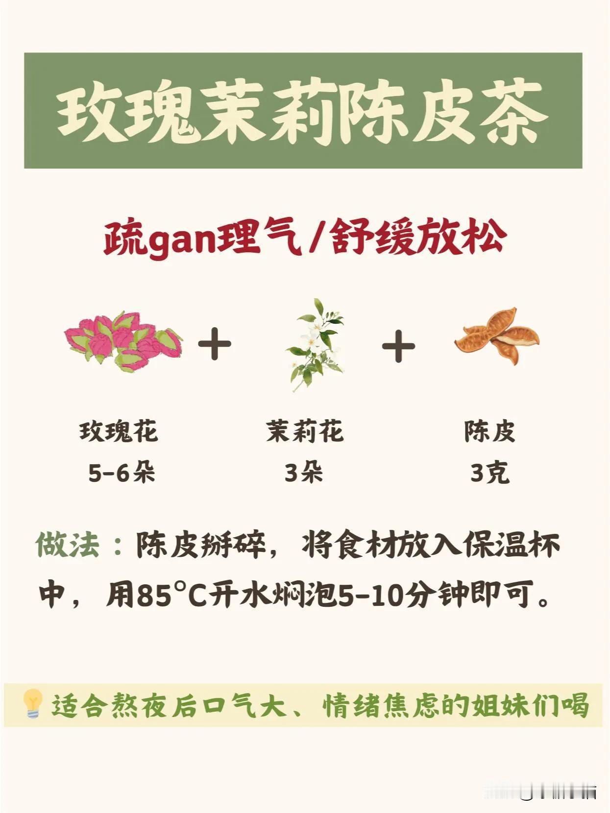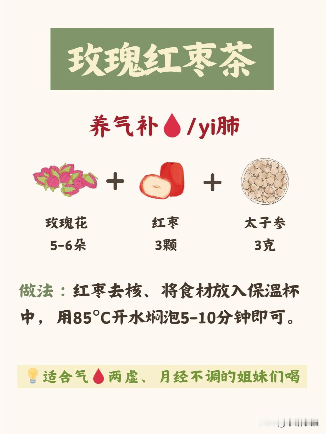 🔥超全的5种玫瑰花搭配,越早知道越漂亮 历史记载玫瑰花,性温,味甘微苦,具有li气解郁、散瘀等功效。从古至今,玫瑰花都是美容养颜的佳品,爱美的姐妹们一定要多喝呀!😉 🌹今天给大家分享5️⃣款超棒的玫瑰养生茶 元气满满气血茶 花茶气血 养颜补气茶 必备的养生茶 阿胶姨妈暖暖茶 月经疏导茶 黄芪当归姜花茶 熬夜养肝茶💞 熬夜养肝茶��