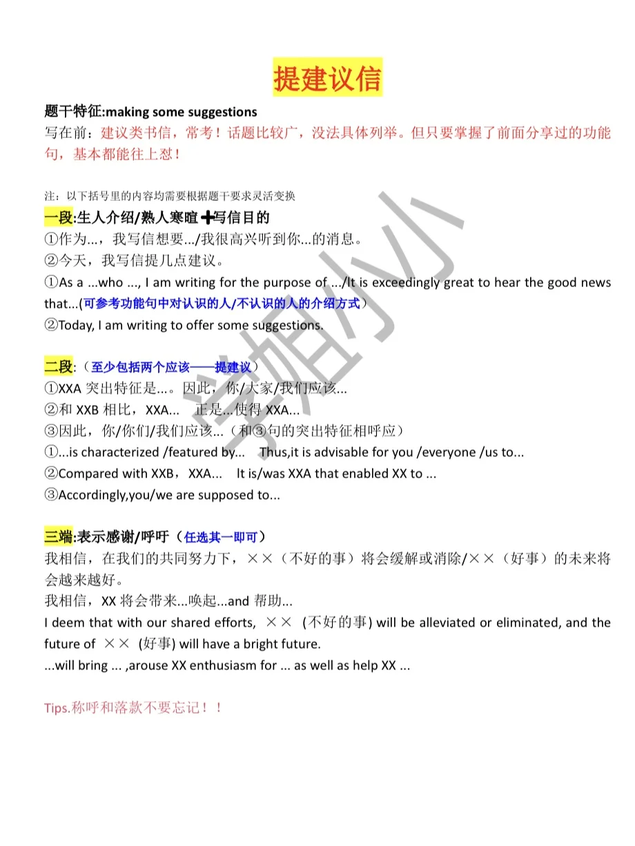 halo宝子们!小作文模板终于又来更新啦,前段时间在忙着写24年的真题解析,所以作文模板就耽误了几天。前面已经更了小作文的【道歉信】和【邀请信】,今天是【通知信】、【建议信】和【T荐信】。