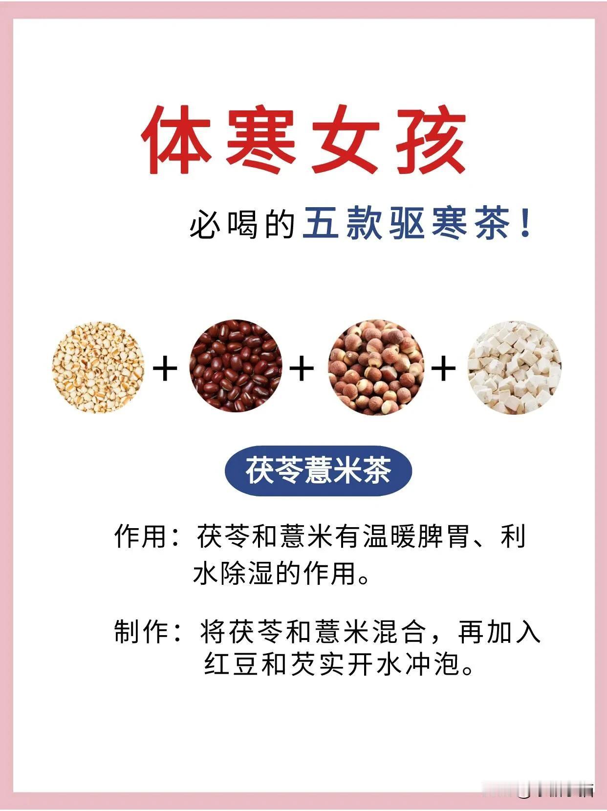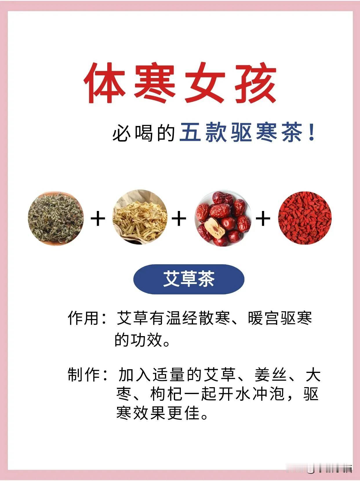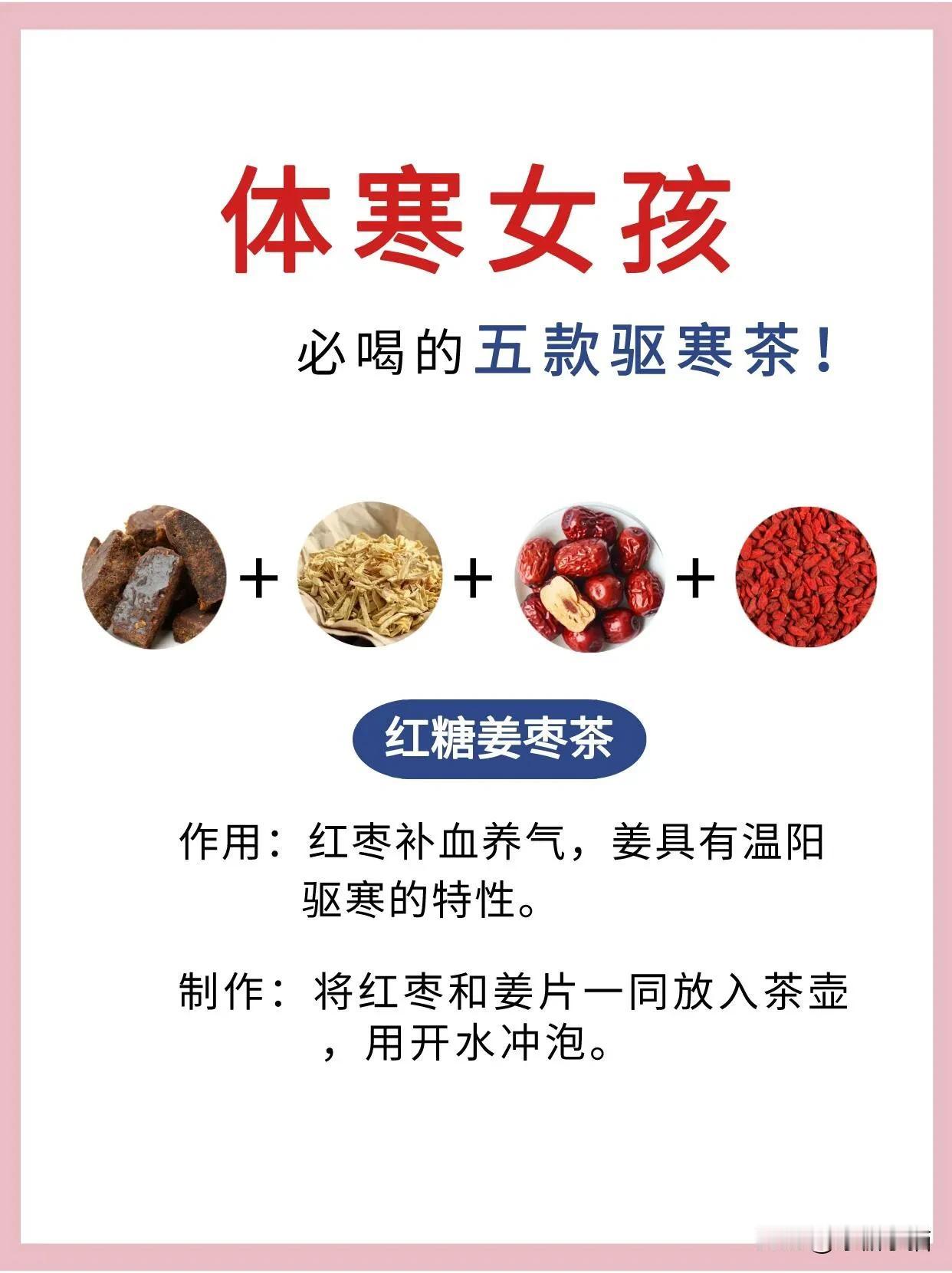 体寒的女孩可以选择喝一些具有驱寒暖身作用 帮助调理身体,增强体温。以下是一些适合体寒女孩的驱寒茶,快来试试吧 养颜补气茶 元气满满气血茶 黄芪当归姜花茶 体寒茶饮 黄芪的茶饮方式 参芪百枚茶 排寒祛湿的茶 麦冬滋阴养颜茶 健脾去湿茶